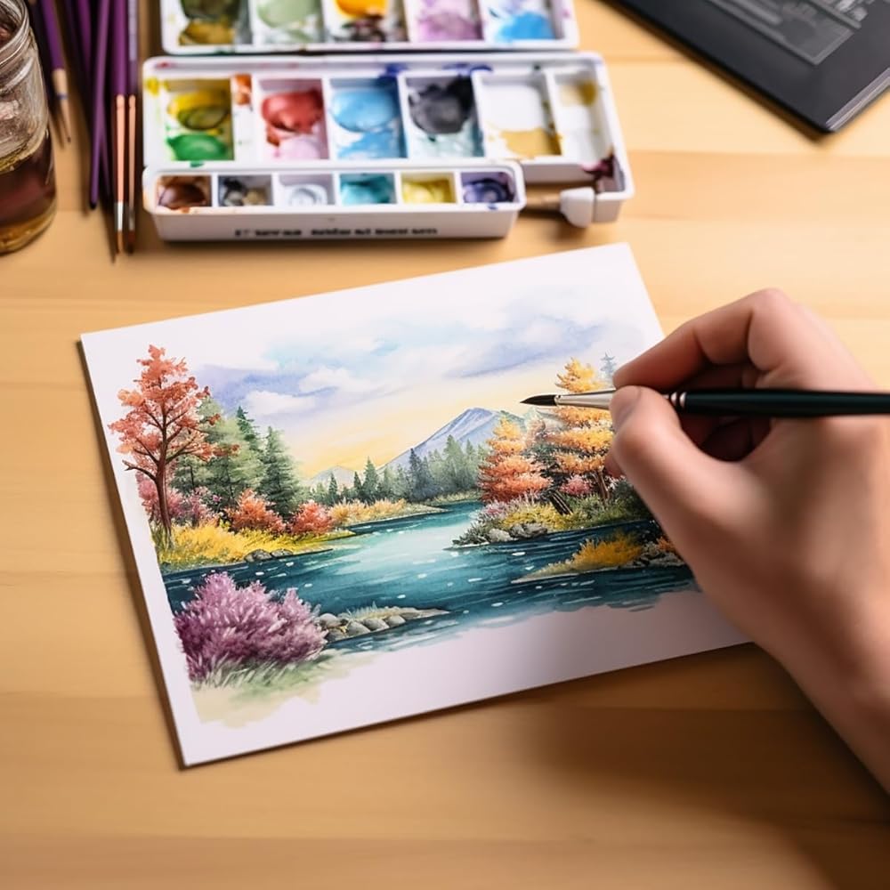 1. Packs of pre-cut 120lb watercolor paper in 5x7 inches standard sizes, ensuring longevity and resilience.