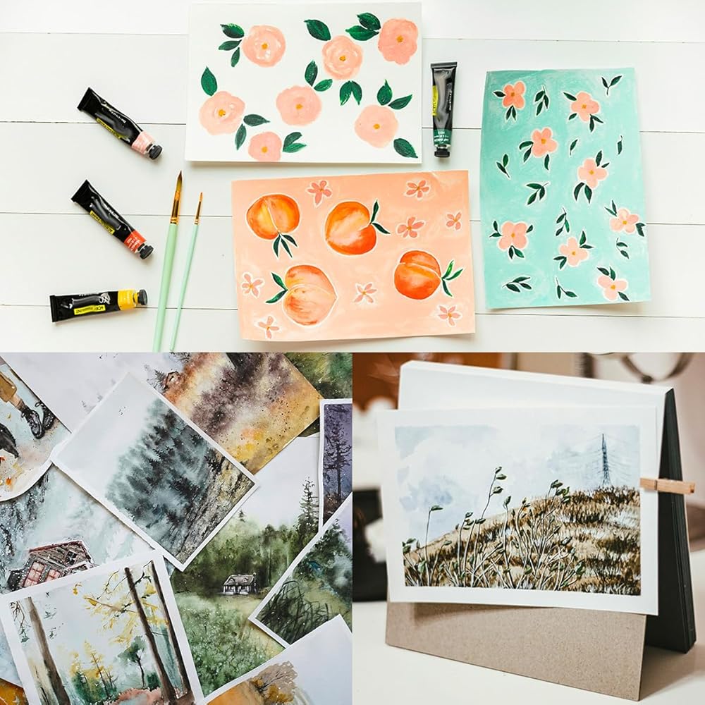 • Perfect for Beginners & Experienced Painters: these watercolor papers can be used with various painting tools, such as pencils, watercolor paints or marker pens, while you're embarking on a creative journey. These watercolor papers cater to every skill level, suitable for painting, making watercolor albums, cards, collages, and other craft projects.