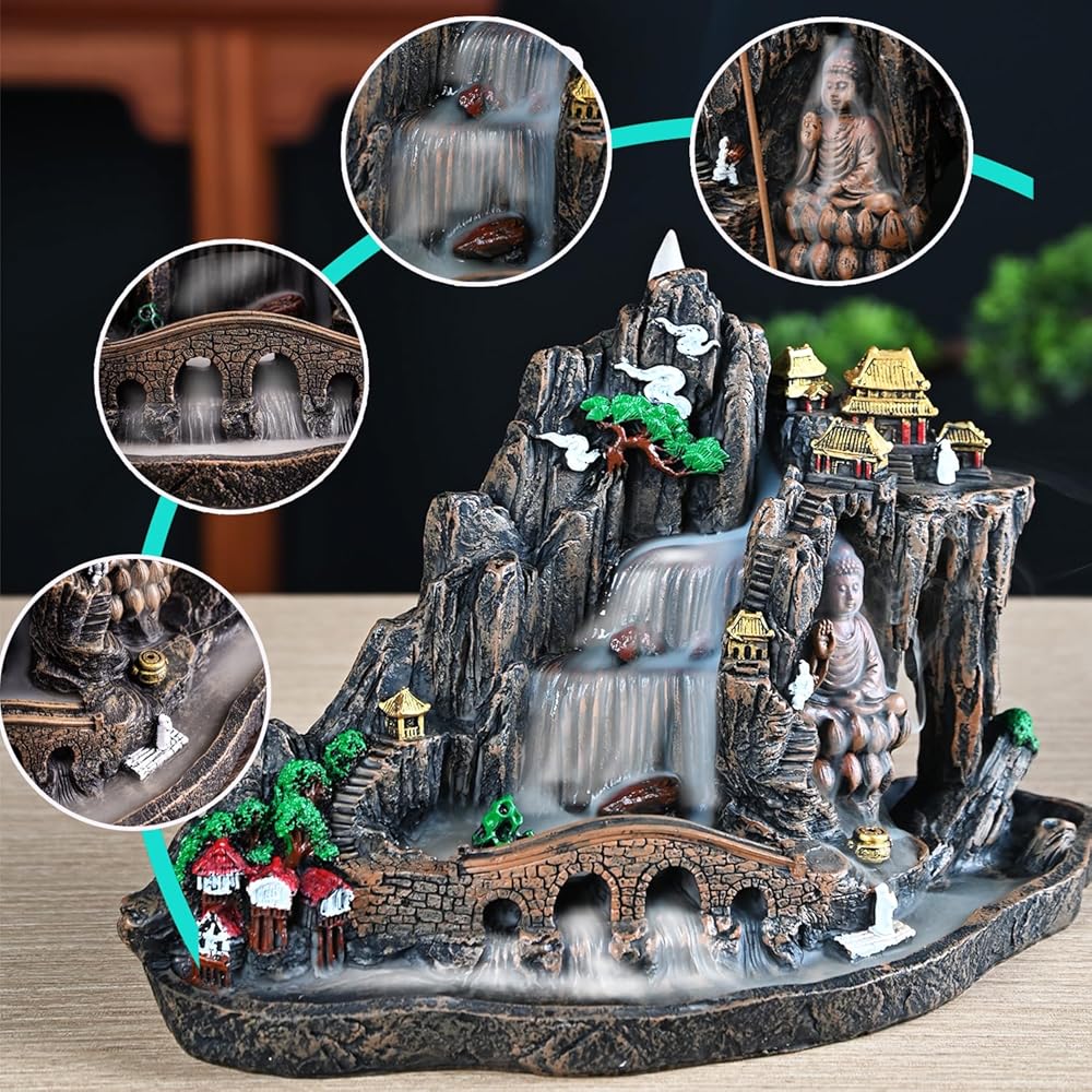 ❤【Product Includes】:This product includes incense burner, waterfall incense cone, incense stick, tweezers, mat. backflow incense burner is large size 6x4.3x8.2inch is a beautiful decorative piece and gift.