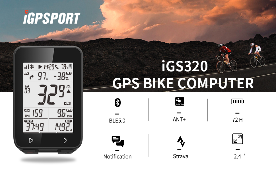 iGS320 GPS Bike Computer، IPX7 مقاوم للماء لاسلكي لركوب الدراجات، كمبيوتر GPS للملاحة، متوافق مع أجهزة استشعار Bluetooth ANT+، عداد السرعة MTB Tracker يناسب جميع الدراجات