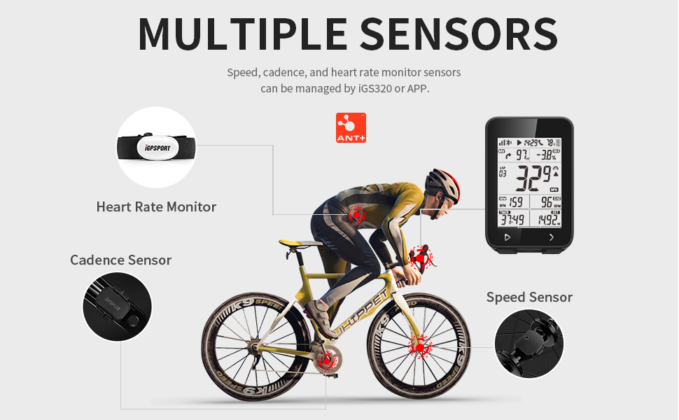 【متوافق مع مستشعر ANT+】متوافق مع جميع أجهزة استشعار ANT+، ومستشعر الإيقاع، ومستشعر السرعة، ومستشعر معدل ضربات القلب للحصول على بيانات أكثر ثراءً لركوب الدراجات