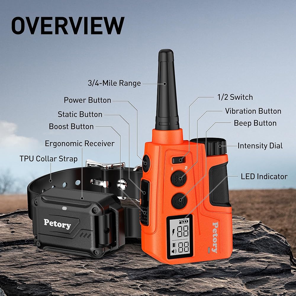 طوق تدريب الكلاب على Petory مع طوق ثابت على بعد 4000 قدم ، مقاوم للماء وقابل لإعادة الشحن للكلاب 10-120 رطلاً ، صافرة قابلة للتعديل ، اهتزاز ، ثابت آمن ، ودعم ثابت للتدريب الفعال