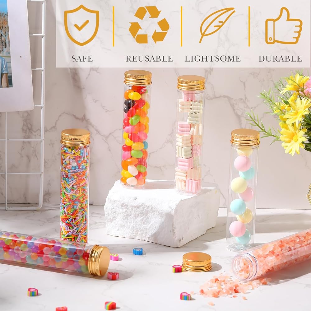 Clear storage tubes is suitable for storing candies, small samples and liquids, which can be applied for daily, science experiments and parties.