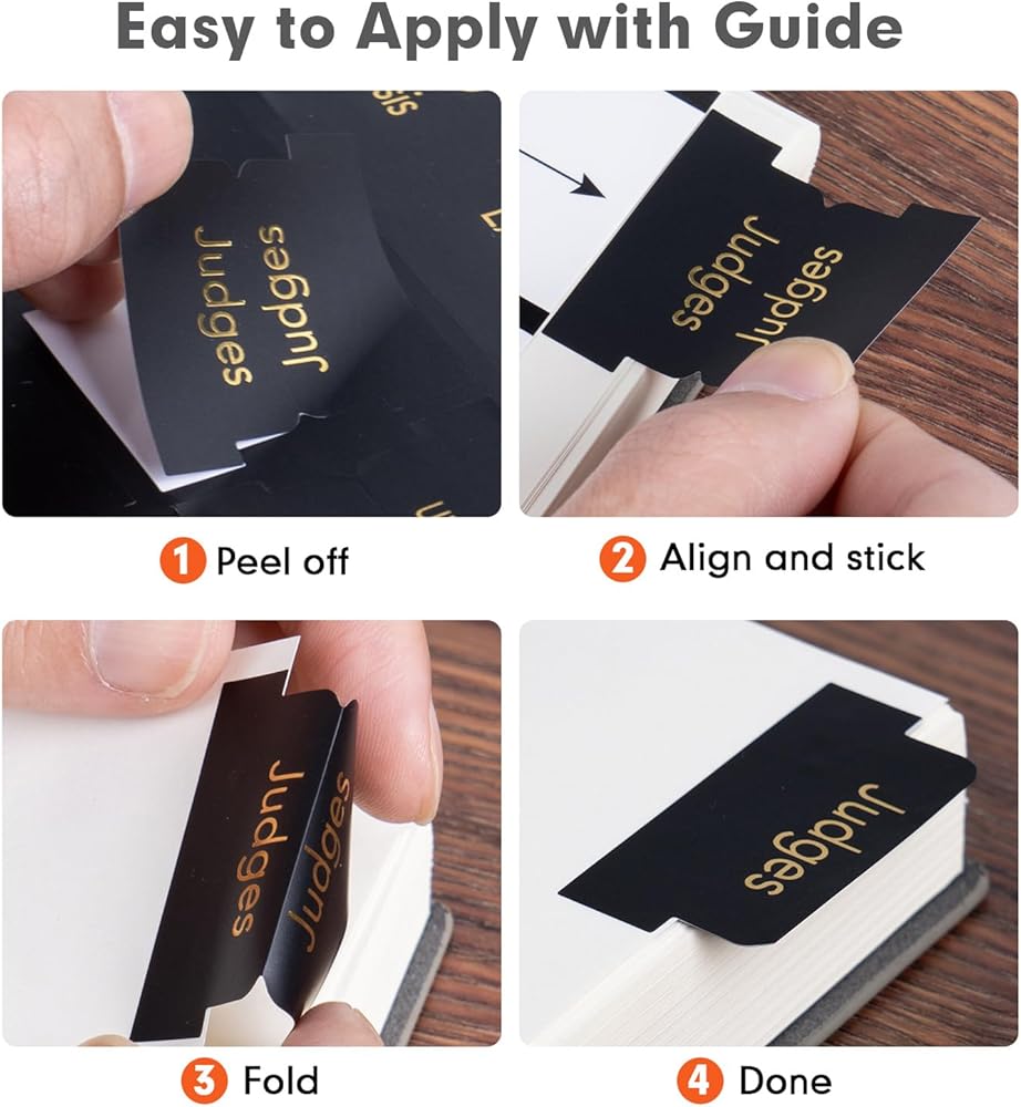 【أسهل في الاستخدام】عروات مؤشر الكتاب المقدس ذاتية اللصق، ما عليك سوى مواءمتها مع الدليل المقدم ووضعها بشكل إبداعي في الكتاب المقدس الجديد. ملصقات الكتاب المقدس مسجلة مسبقًا في المنتصف لسهولة الطي.