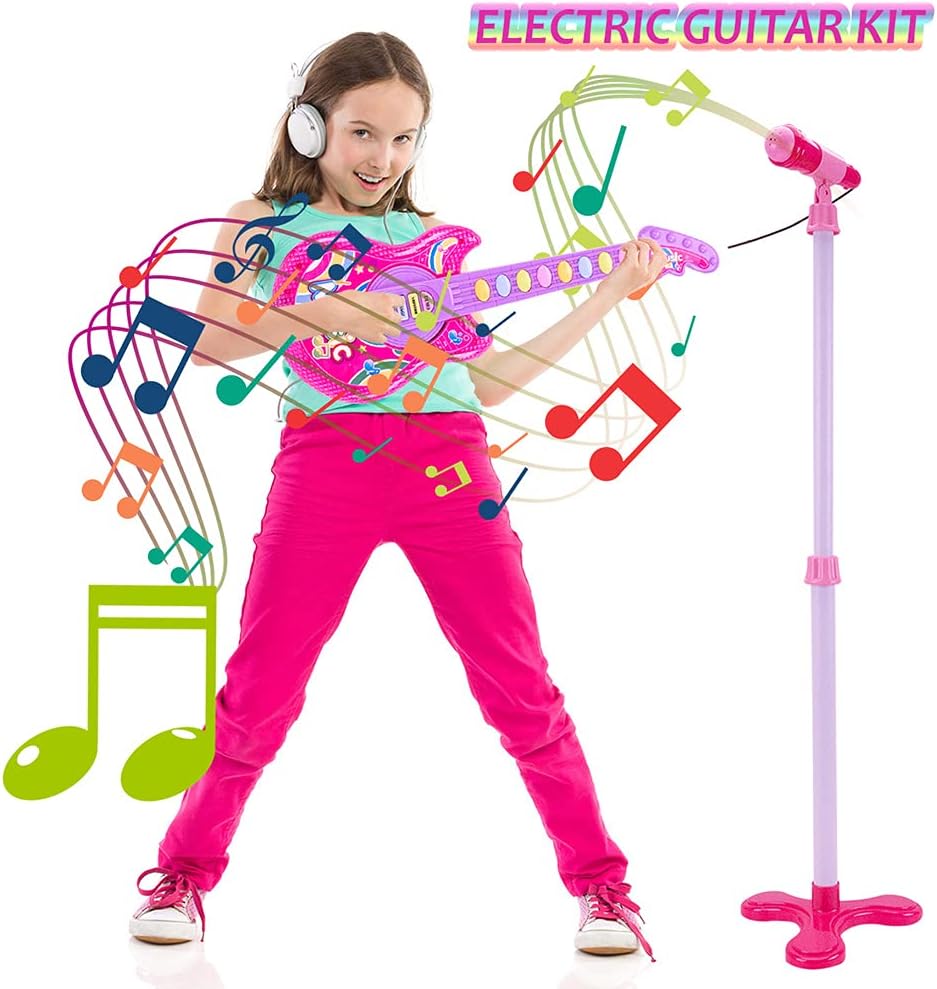 • 【Toy Guitar for Kids】The electric guitar set is equipped with an easy-to-operate guitar, a functional microphone and an adjustable microphone stand, complete accessories, to stimulate children's interest in music