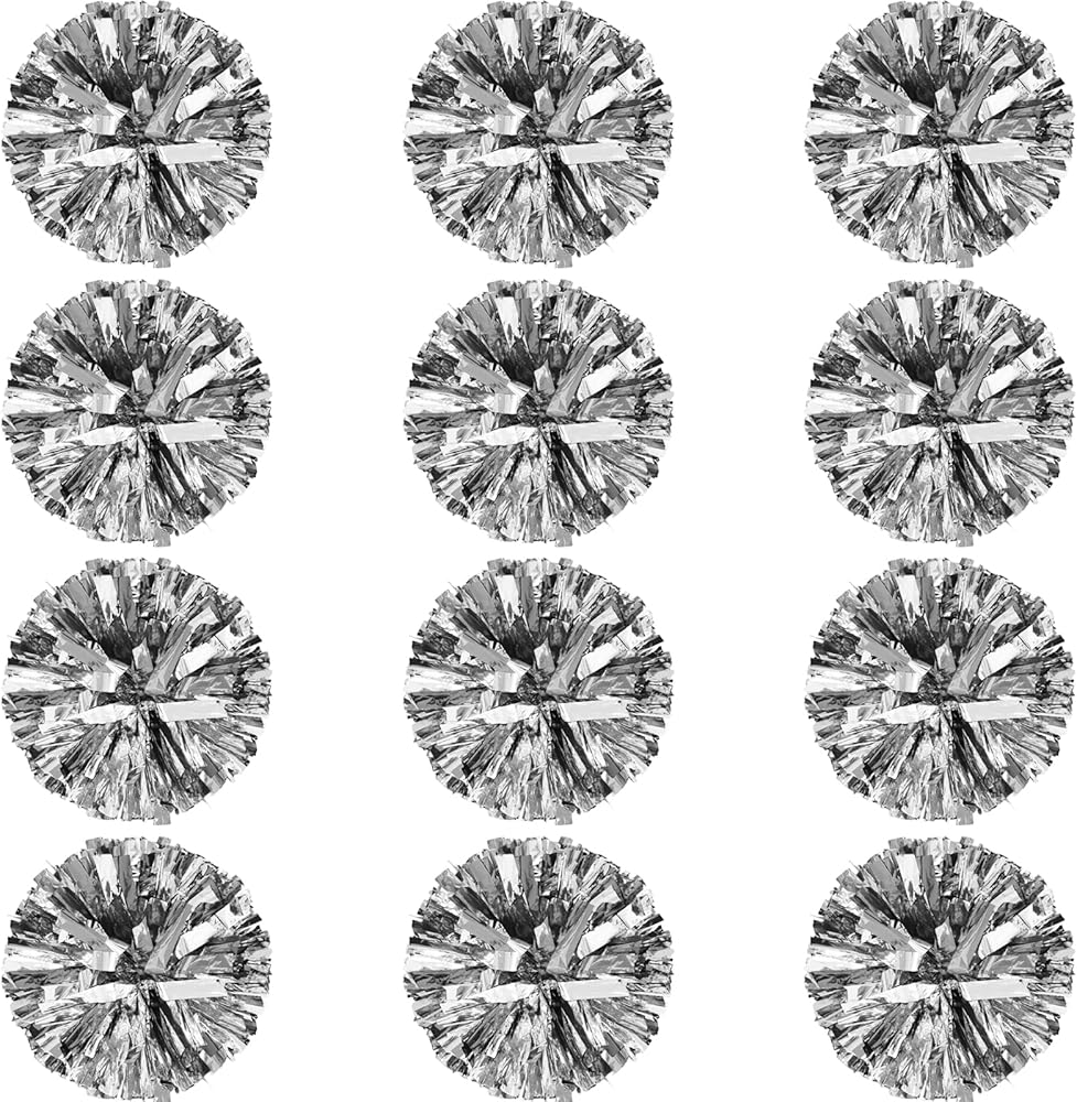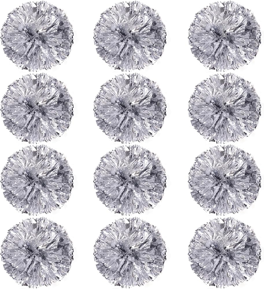 12 Packs Cheerleading Pom Poms, Plastic Metallic Foil Cheerlead Pompoms Bulk, Cheer Hand Flowers for Kids Adult Sports Team, Football Baseball Basketball Game, 12 Inch