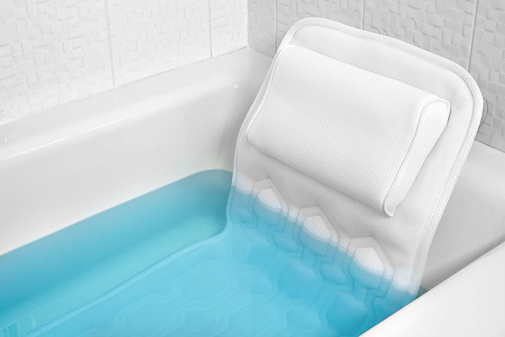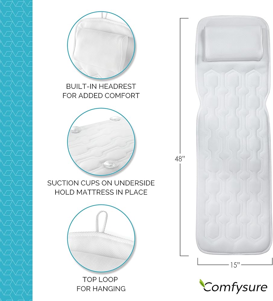 35% Thicker Padded Layers: COMFYSURE bath lounger was fabricated with breathable 3D air mesh technology, multiple layers are quilted into this spa bath mattress for silky soft comfort. A built-in headrest wedge lets you lean back while laying down straight. Feels like you're lying on clouds!