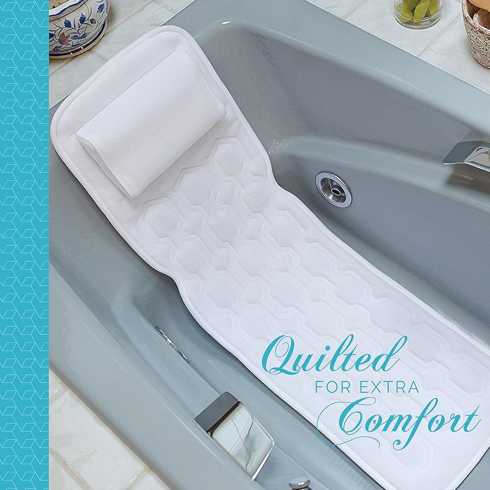 Large Size Fits All: At 4 feet long and 15 inches wide (48" x 15”), this bath pad accommodates the head, neck, shoulder, tailbone with exceptional back support of most adults and kids. Awesome gift for pregnant women. A bath accessory for the entire family!
