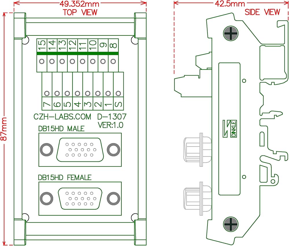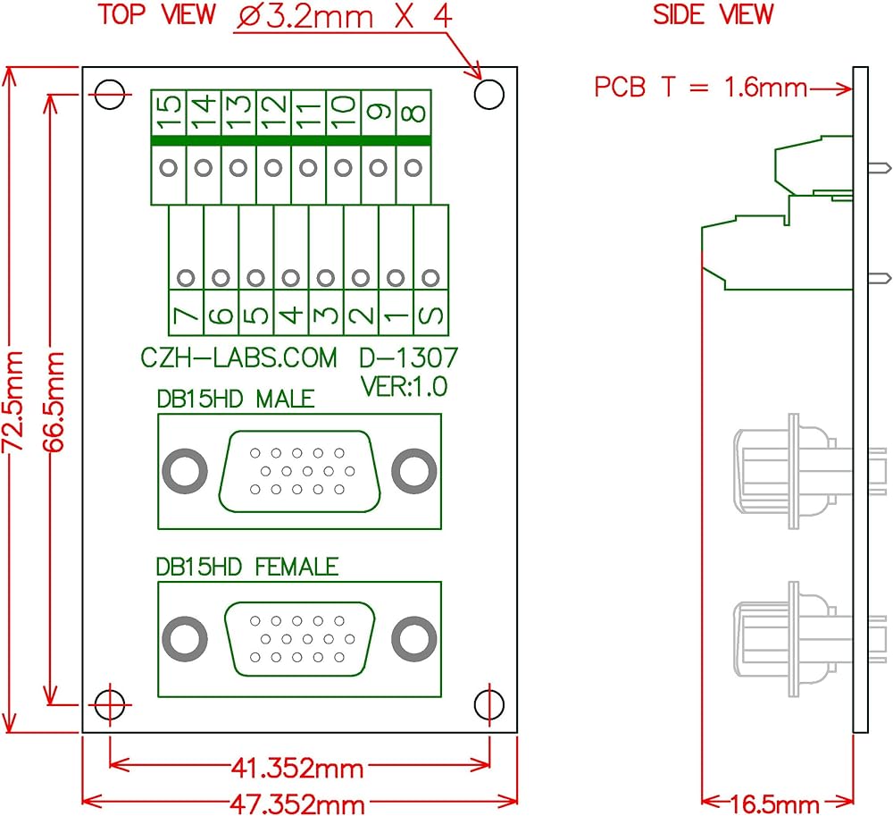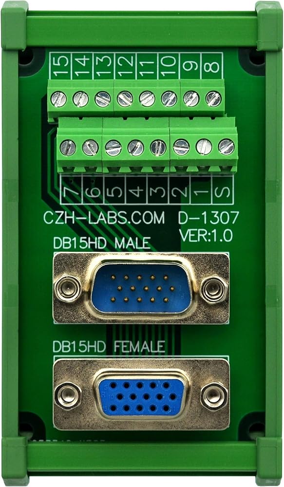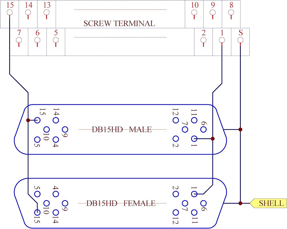 1, Standard DB15HD Male/Female header connectors. Male header, female header and screw terminal 1:1:1 connects for per line.