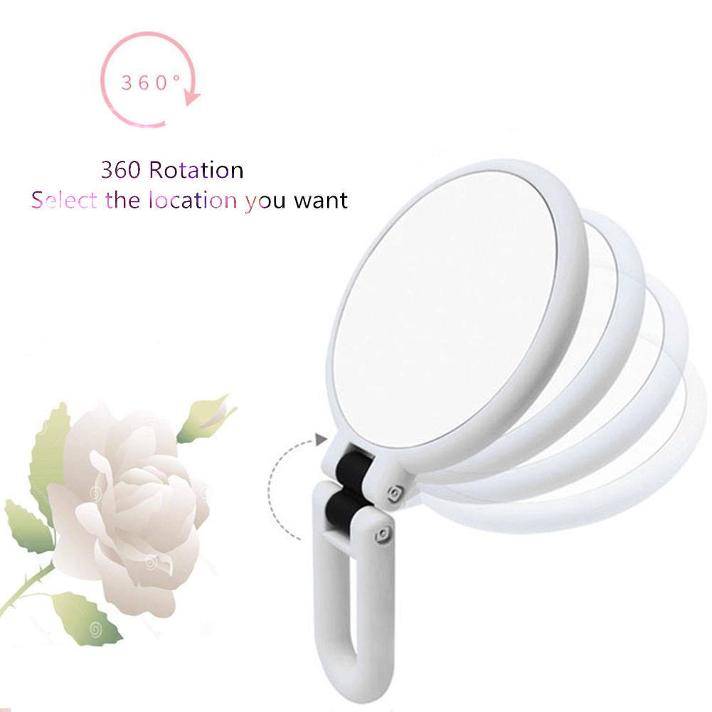 مراة مكياج مكبرة 15 مرة بوجهين قابلة للدوران 360 درجة عصرية للسفر او الحمام (ابيض)