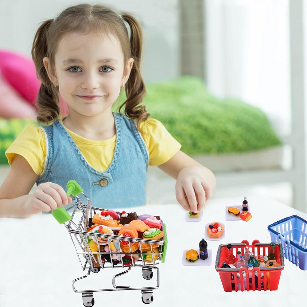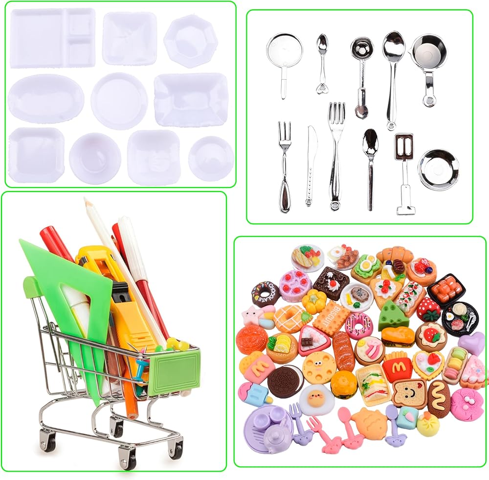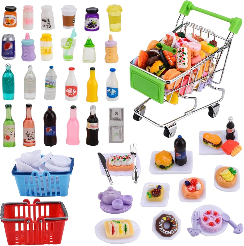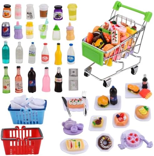 Wide Application Scenarios: Mini shopping cart not only as a kid-friendly toy, also can be used as a wonderful desk holder for storing pen, flower, cosmetic and so on. Mini food is great accessories for dollhouse decorations and can be suitable for mini landscape, window display, applied to DIY handicrafts, making hairpins, also can serve as embellishments for phones, picture frame, etc.