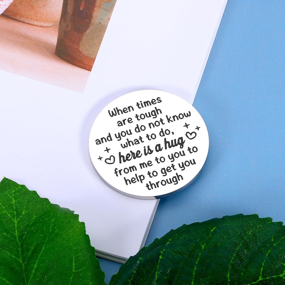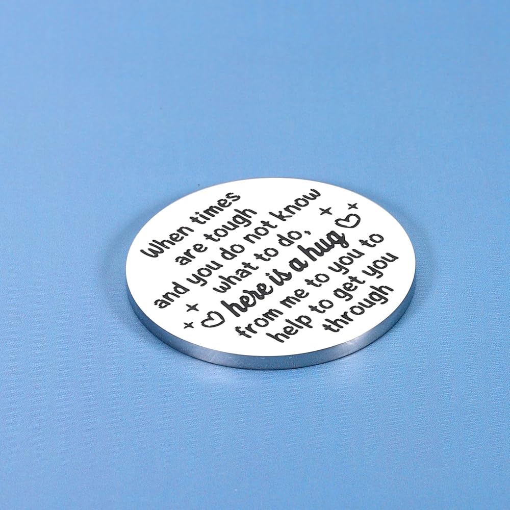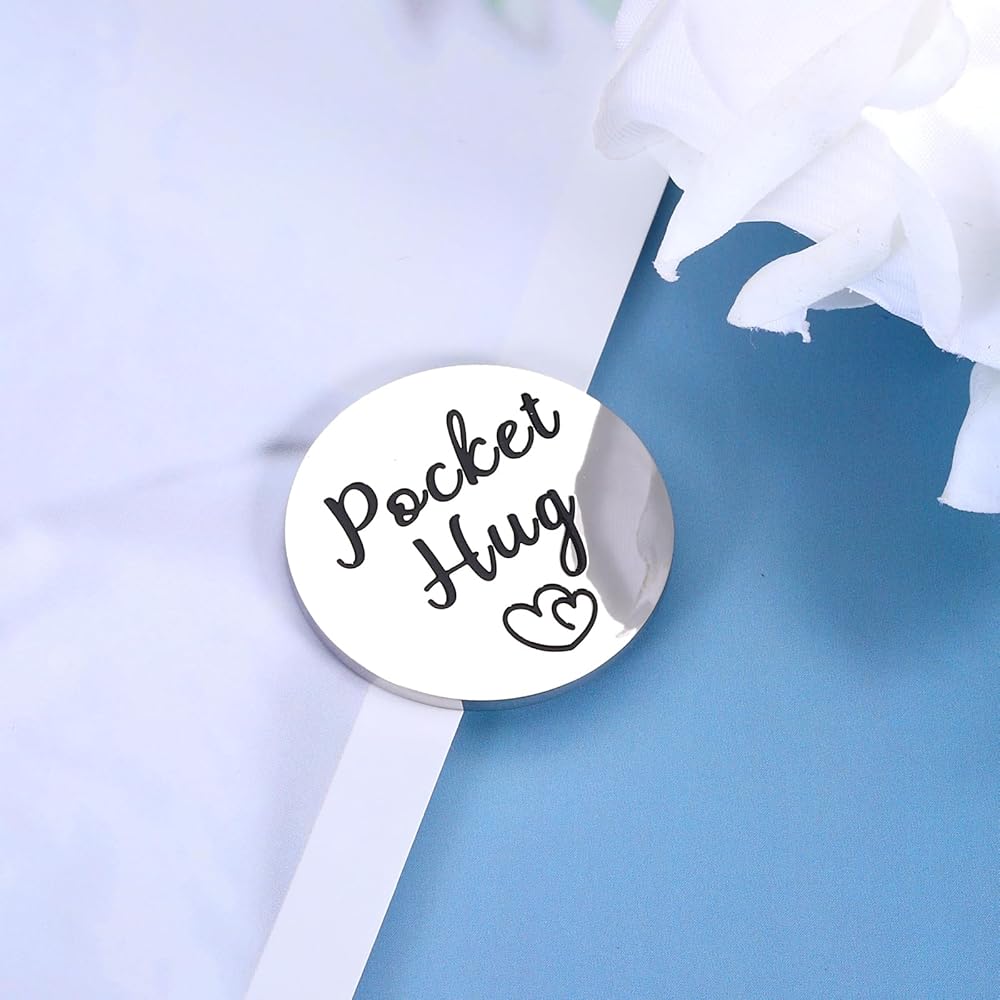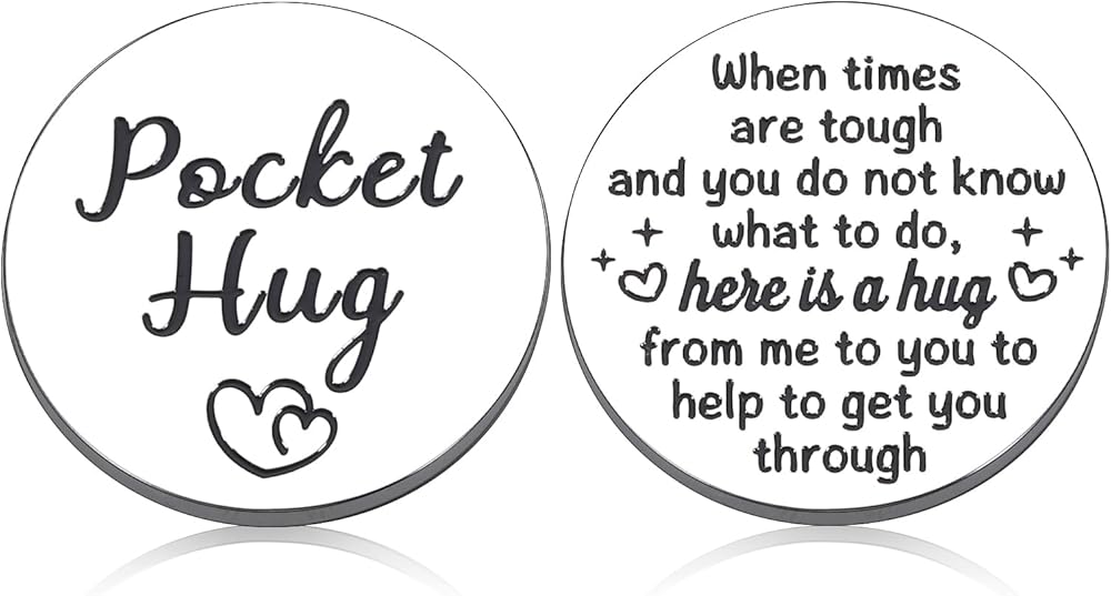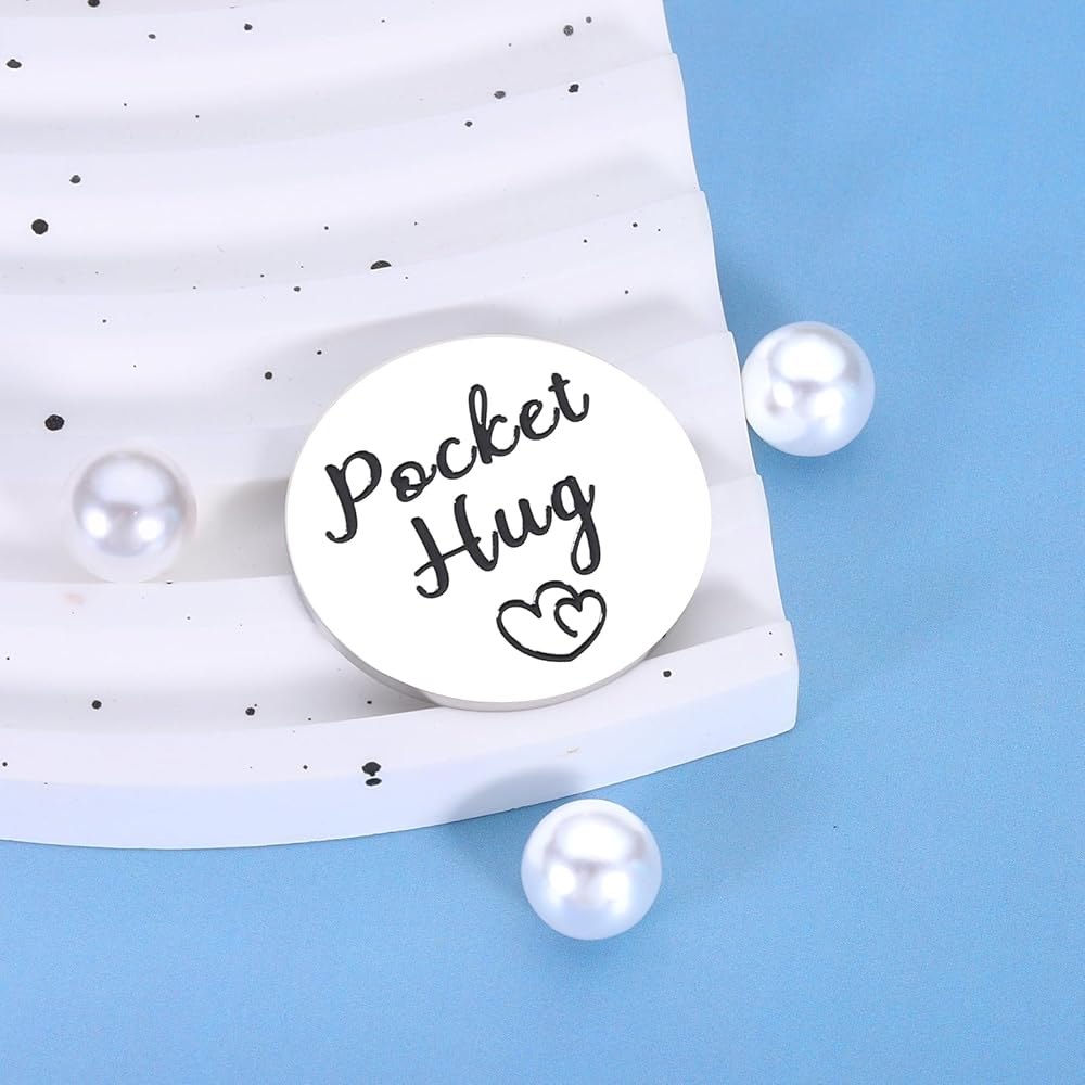 【عناق الجيب احصل على هدايا جيدة قريبًا】 عناق جيب صغير منقوش عليه "Pocket Hug" في الأمام مع نمطين للحب، مما يجعل صديقك المفضل يشعر بالدفء الشديد. الجزء الخلفي: "عندما تكون الأوقات صعبة ولا تعرف ماذا تفعل، إليك عناق مني لك لمساعدتك على تجاوز ذلك." وهي فكرة هدية تشجيعية وملهمة للنساء والرجال، هدايا نتمنى لك الشفاء العاجل. هدايا لمرضى السرطان هدايا الناجين من السرطان. سيتم لمسهم وتحريكهم عندما يتلقون هذه الهدية ذات المغزى.
