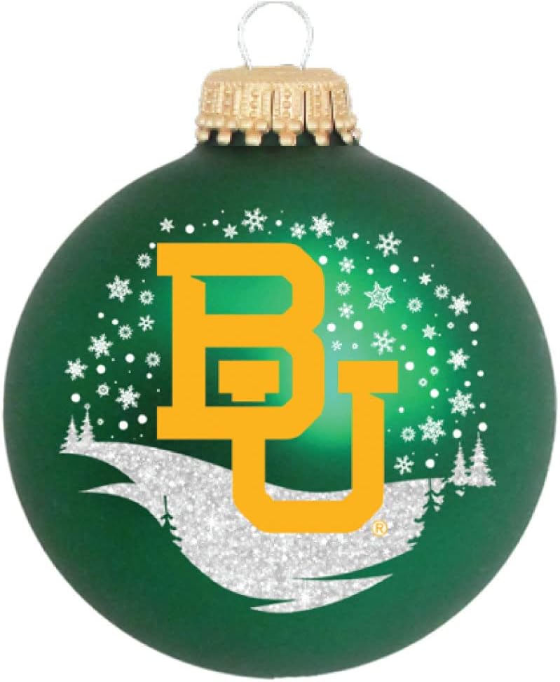 Show your team spirit on the Christmas tree this year! Each custom Blown Glass ornament is 3.25" inches in diameter. The snow scene has durable glitter to last. The ornament includes the team logo and official team colors. Exquisite Quality. It is MADE in the USA and is officially licensed by the NCAA. A custom box for the ornament is also included. Show your team pride and it makes a great Christmas gift for a friend or family member.