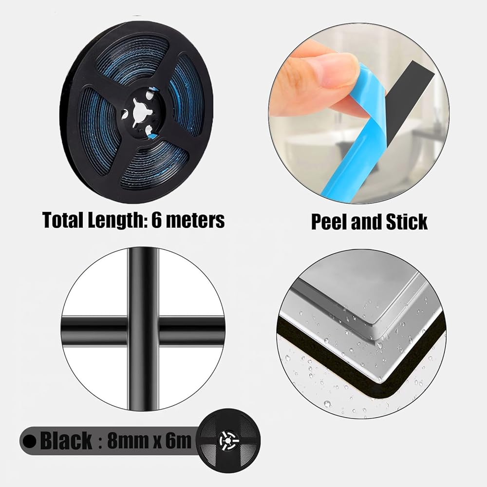 شريط السد المقاوم للماء، شريط السد ذاتي اللصق، لسطح المطبخ في الحمام، حافة جدار الزاوية باللون الأسود