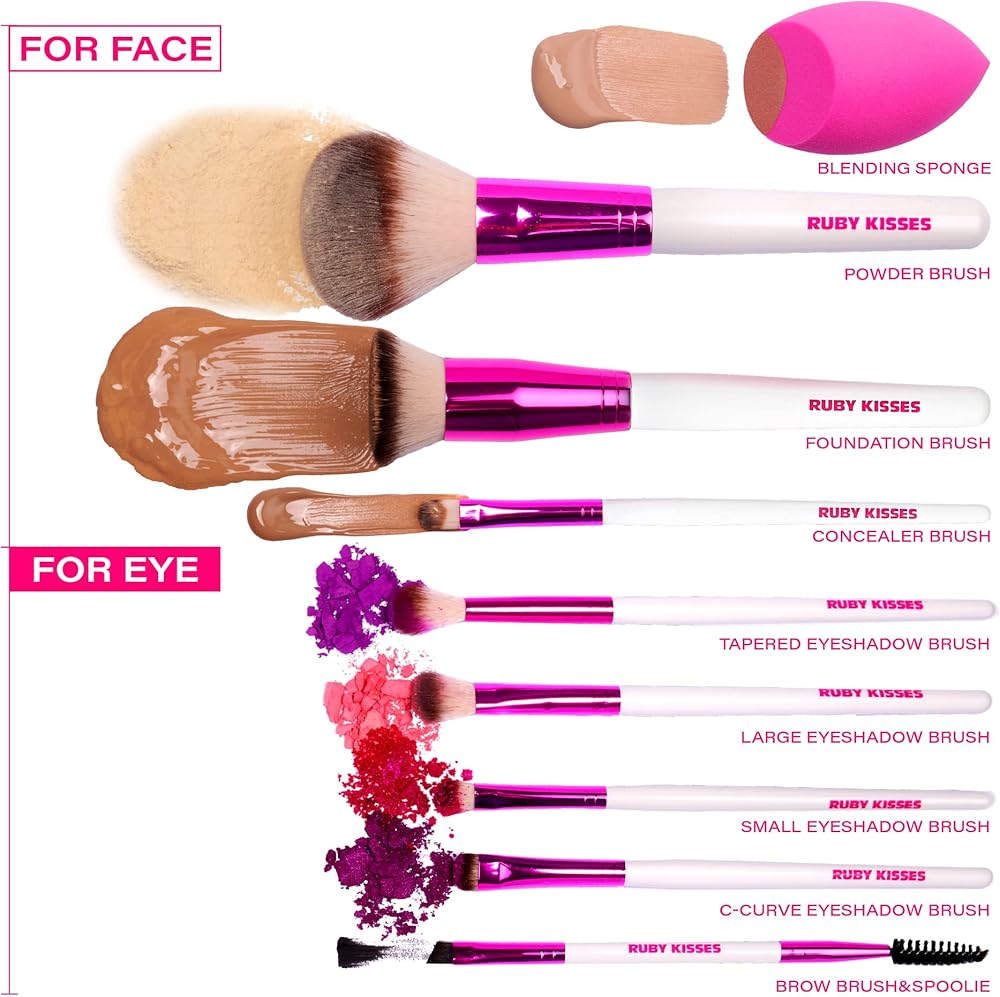 مجموعة فرش مكياج روبي كيسز: شريكك النهائي في خلق مظهر جمالي خالٍ من العيوب دون عناء. تم تصميم هذه المجموعة المنسقة بعناية لتلبية جميع احتياجات الماكياج الخاصة بك، سواء كنت مبتدئًا أو محترفًا للمكياج