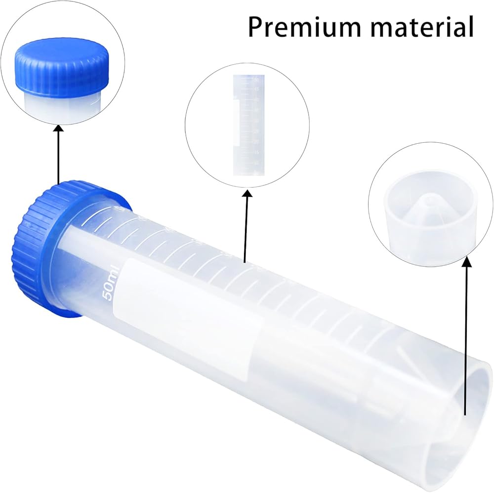LUNKUIVY 50 قطعة من أنابيب الطرد المركزي 50 مل، أنابيب اختبار بلاستيكية مع غطاء لولبي، أنابيب مخروطية من البولي بروبيلين رائعة للتجارب العلمية، علامات متدرجة