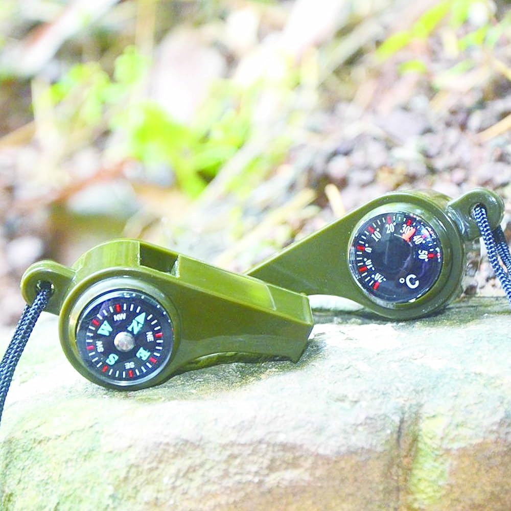 صفارة نجاة للطوارئ من ليتل سيوهي، 2 صفارة 3 في 1 مع بوصلة وصافرة ميزان حرارة مع حبل للتنزه في الهواء الطلق