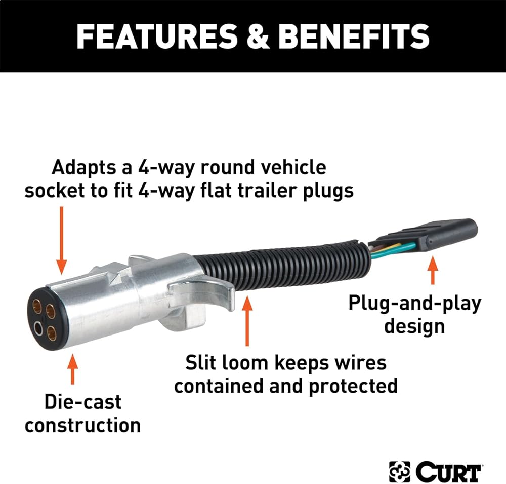 CURT 57444 محول أسلاك دائري من جانب السيارة إلى 4 اتجاهات للمقطورة ذو 4 دبابيس
