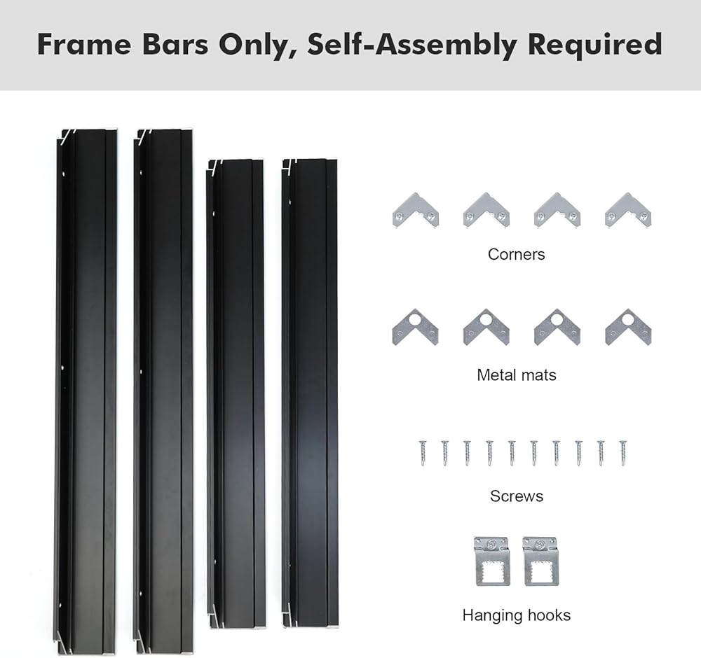 تركيب خالٍ من المتاعب - قضبان إطار غير مكتملة، تحتاج إلى التجميع! توجد فتحات لولبية محجوزة لتقديم الحل الأسهل لمشروعك الفني. يتضمن الإطار العائم من القماش جميع ملحقات التثبيت الضرورية وتعليمات المستخدم. كل ما تحتاجه هو إعداد مفك براغي وإرفاق لوحات القماش الملفوفة في الإطار العائم. علق على الحائط واستمتع. لا تقلق لتجربتها!