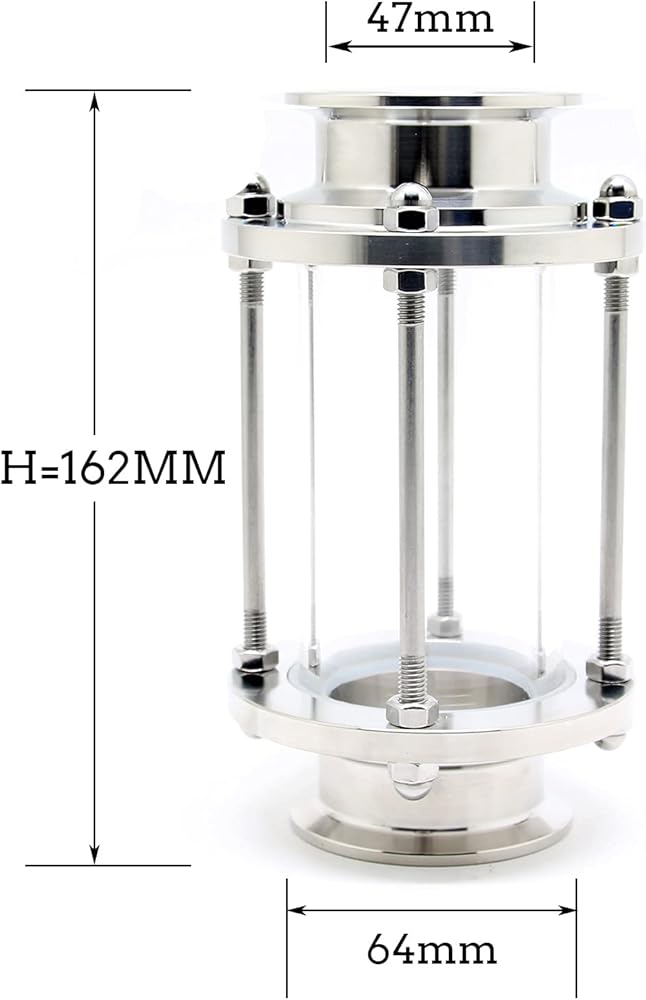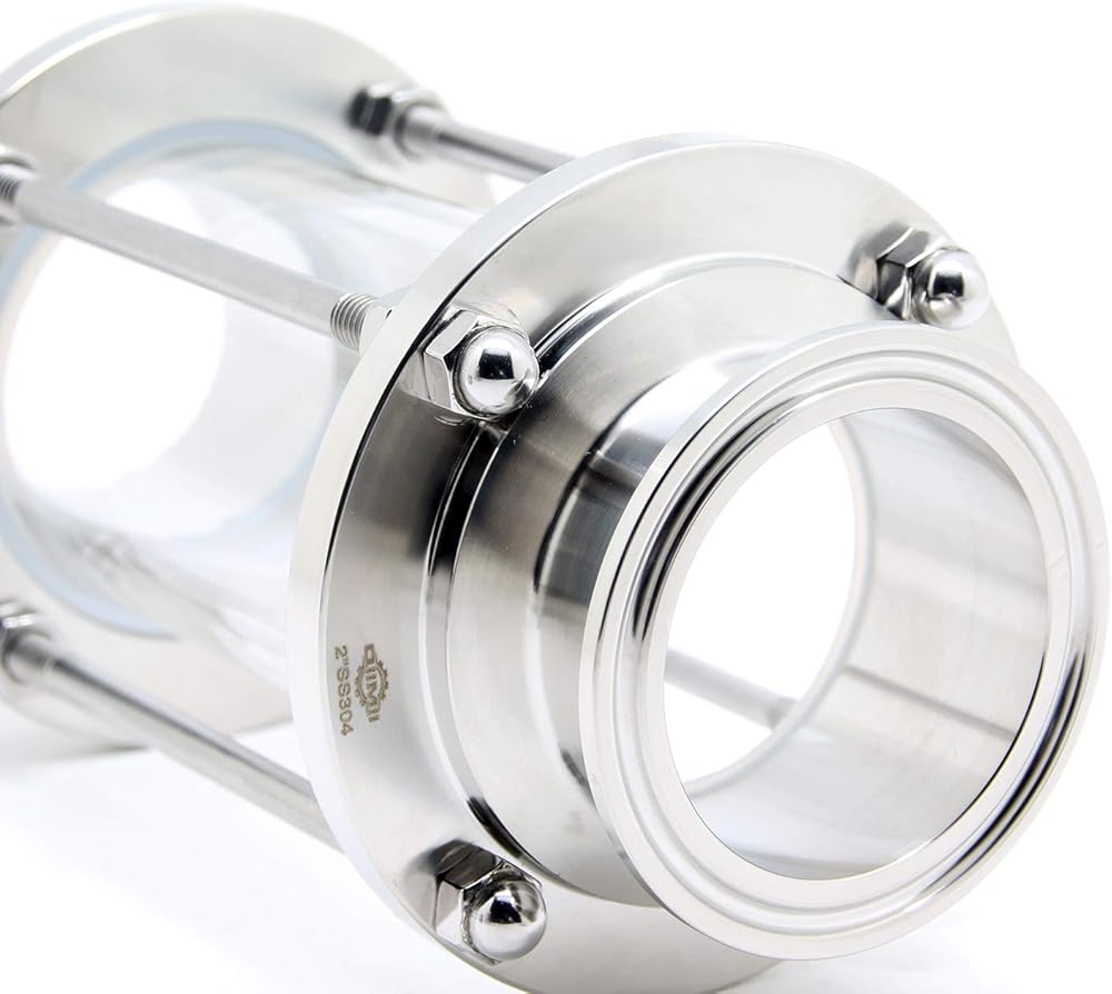 QiiMii 2 "زجاج رؤية صحي في الخط مع طرف ثلاثي المشبك، زجاج بصري مستقيم للتدفق الصحي ثلاثي المشبك من الفولاذ المقاوم للصدأ SS304 (قطر الأنبوب: 51 مم)