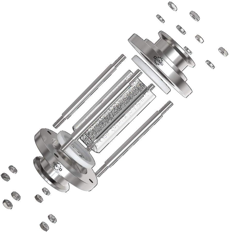 - أنبوب تدفق زجاجي في الخط OD: 51 مم، حلقة OD: 64 مم، يناسب المشبك الثلاثي: 2 بوصة