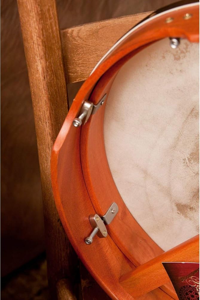 16 x 3.5 inch red cedar bodhran with inside tuning and T-bar. Bolt tuning is hidden on the inside of the frame. Includes a tipper and a tuning wrench.