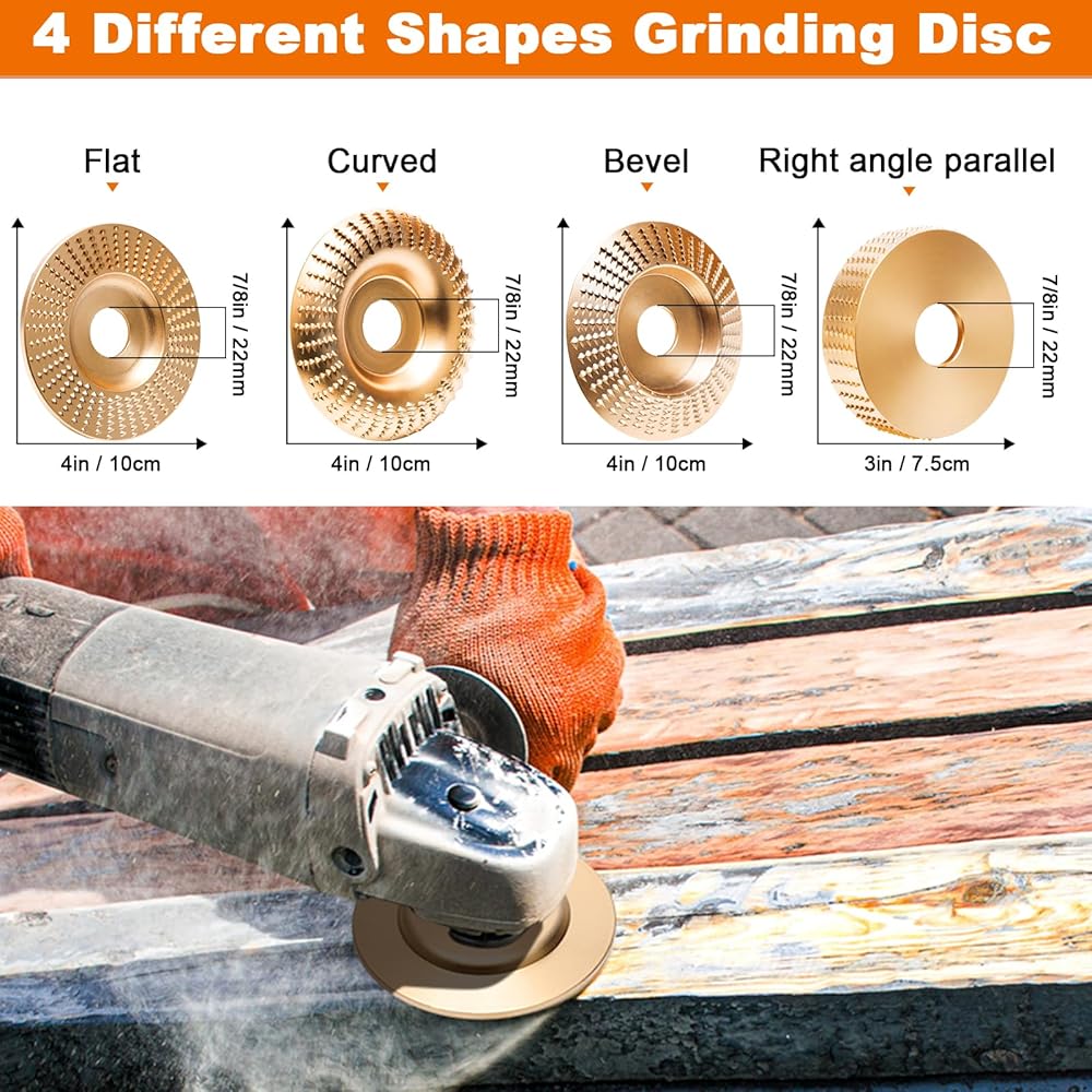 ღ【مجموعة أقراص نحت الخشب 10 قطع】سوف تحصل على 4 × أقراص طحن خشبية مطورة بأشكال مختلفة (الزاوية اليمنى مسطحة، منحنية، مسطحة، مائلة)، 2 × عجلات صنفرة حمراء 60 حبيبة، 2 × عجلات صنفرة زرقاء 80 حبيبة 1 × مفتاح طاحونة عام، 1 × قاطع سرعة، 1 × حلقة تحويل (7/8 بوصة إلى 5/8 بوصة)، تلبي احتياجات الأعمال الخشبية المتنوعة.