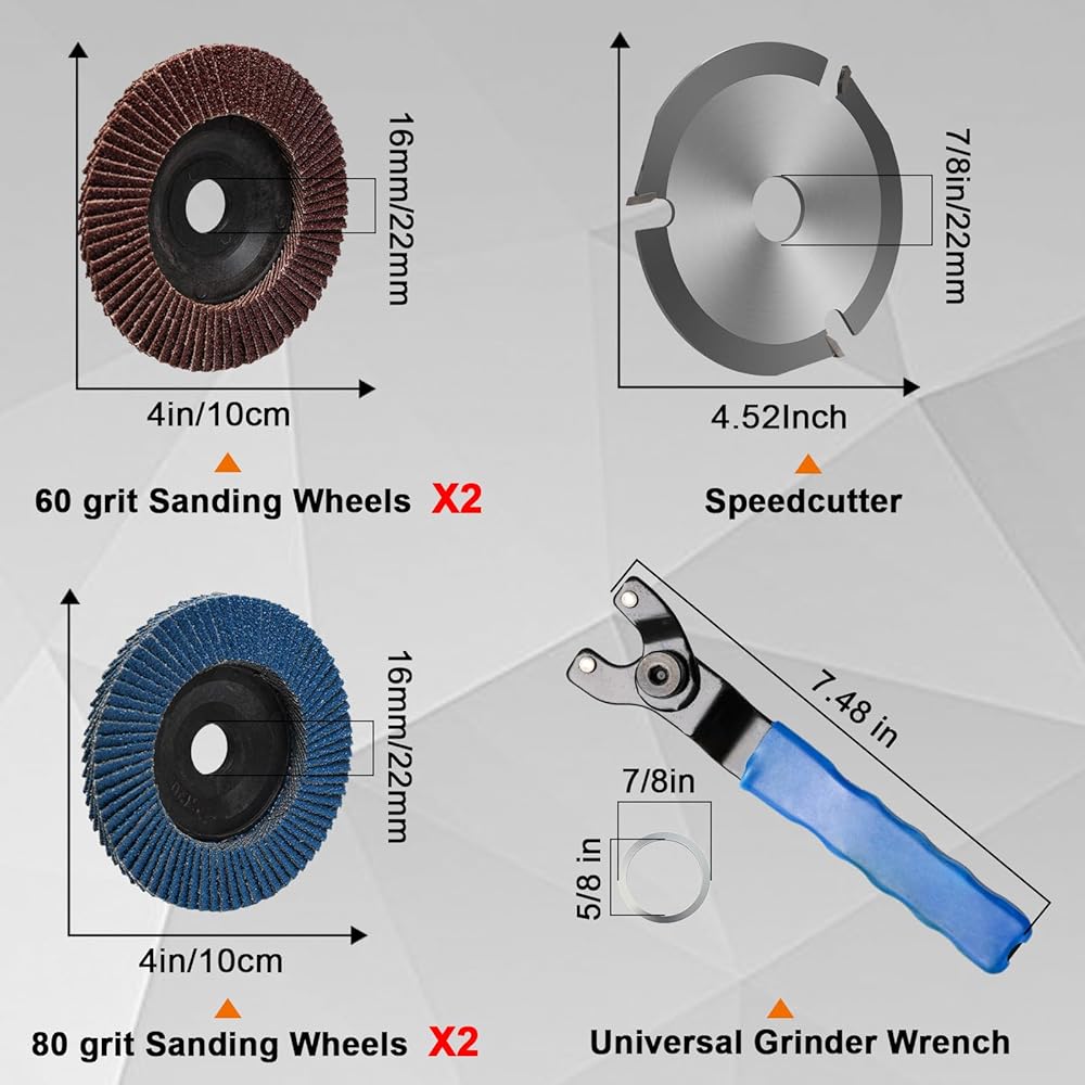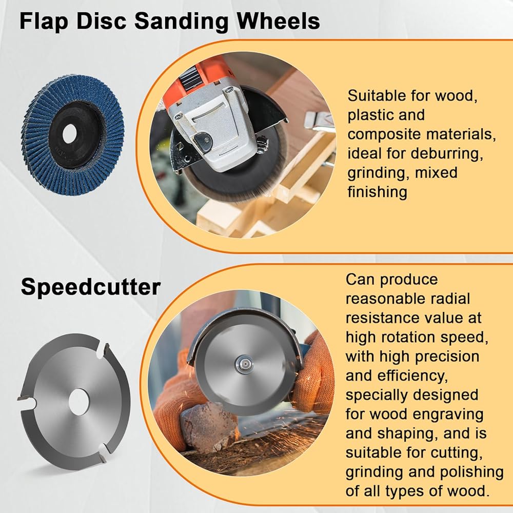 ღ【قرص نحت الخشب بتصميم مطور】معظم أخاديد عجلة الطحن في السوق صغيرة جدًا بحيث لا تستوعب 1.61 بوصة من صواميل الشفة. يعمل قرص نحت الخشب الخاص بمطحنة الزاوية على توسيع الفتحة المركزية لتكون متوافقة مع حجم صامولة الحافة، والتركيب والاستخدام بشكل أكثر ملاءمة وملاءمة.