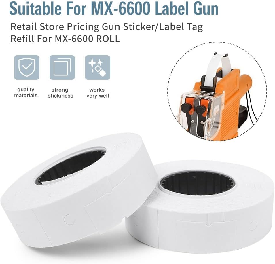 ورق ملصقات 10 لفات من Newsmarts، ورق ملصقات السعر الأبيض لـ MX-6600 PriceLabeller