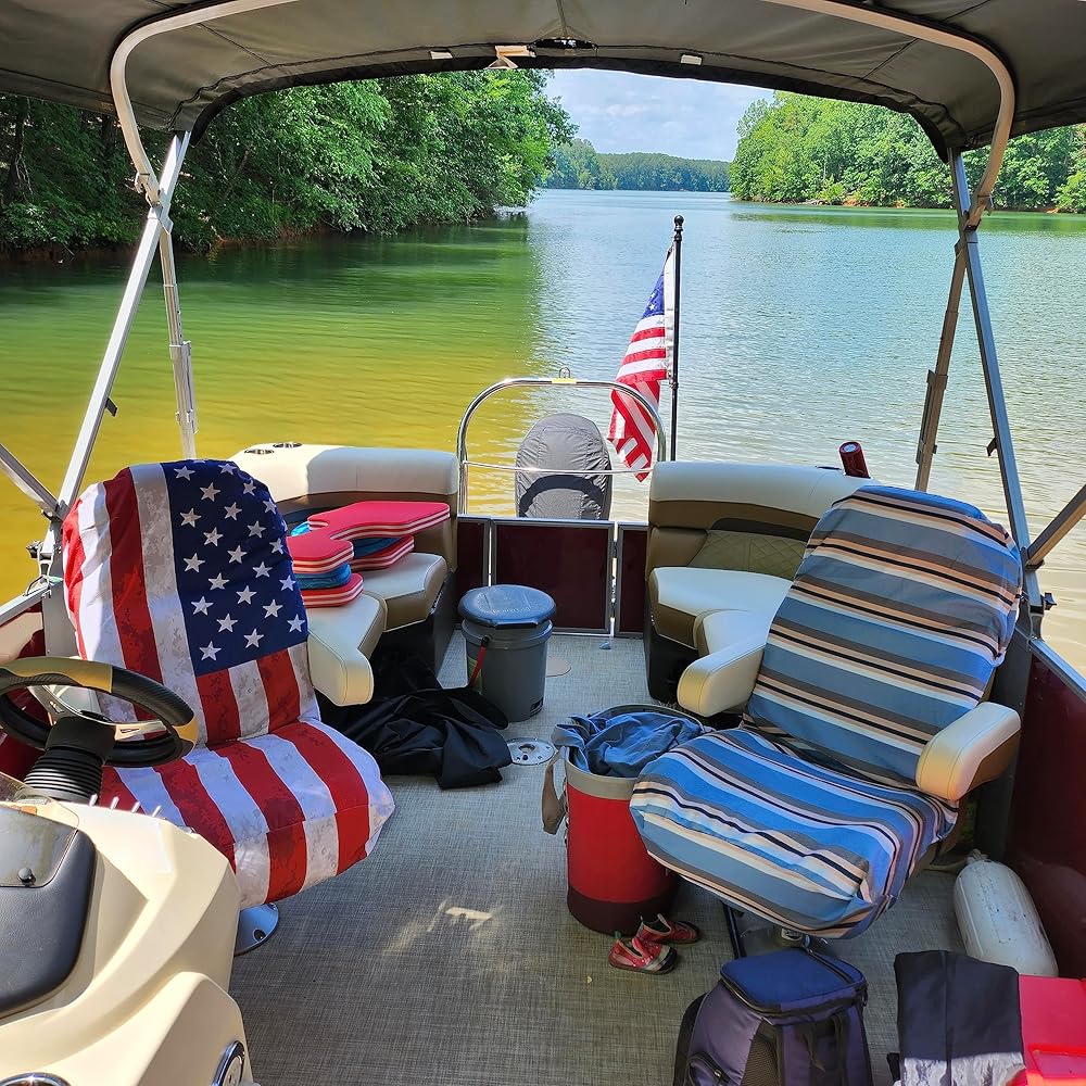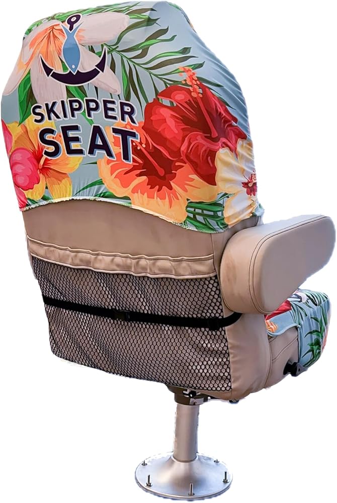 Stay dry on those hot summer days with the Skipper Seat. This Absorbent machine washable, microfiber cover is specifically designed for the captains chair of your pontoon boat. It won't slide off or blow away, thanks to its elastic buckle. Slide the Skipper Seat in seconds and enjoy your day on the water!