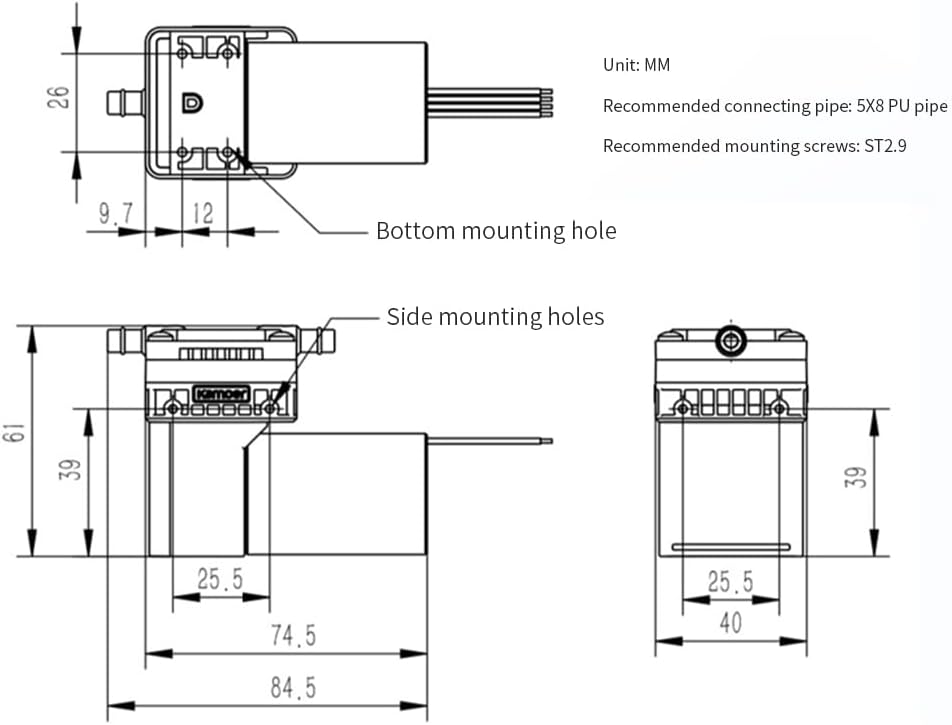 Kamoer HLVP15 small 12V vacuum pump brushless motor high precision long life air pump high flow diaphragm pump 12L/min type A single head