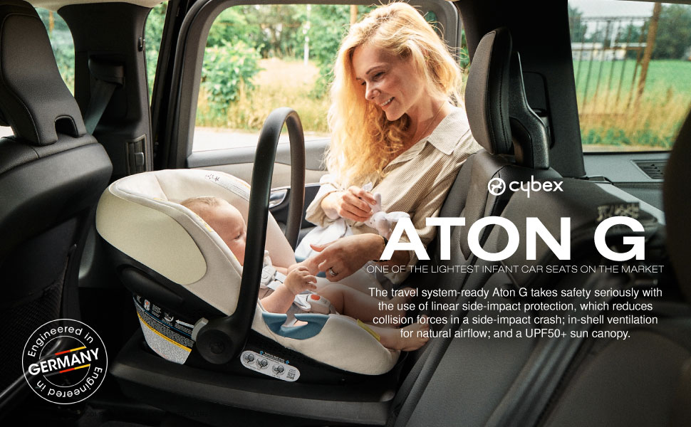 At 9 lbs., the CYBEX Aton G is one of the lightest infant car seats on the market. The Aton G takes safety and comfort seriously with the use of linear side-impact protection, which reduces collision forces in a side impact crash, in-shell air ventilation for natural airflow and a UPF 50+ sun canopy. Additionally, the SAFELOCK belt tensioner provides a quick and easy installation.