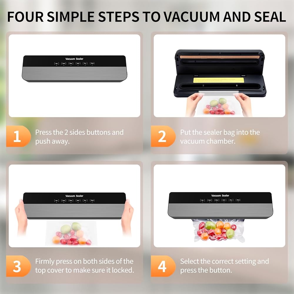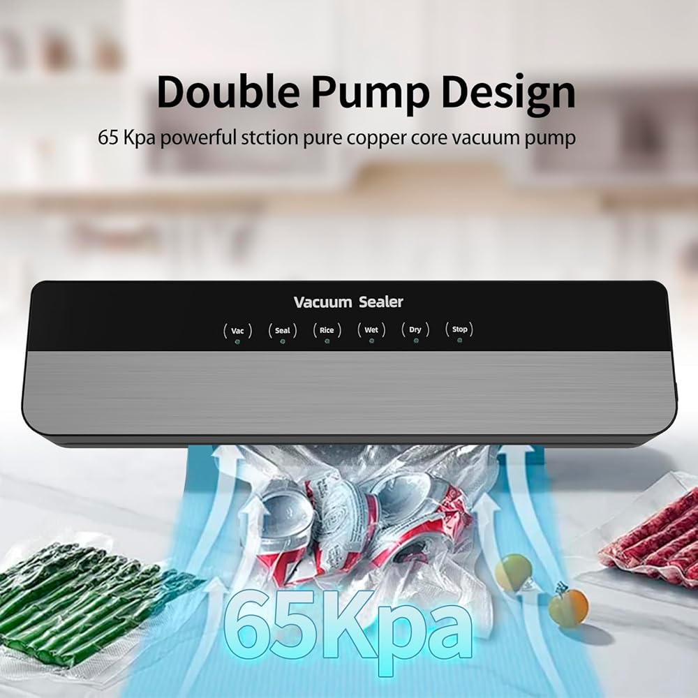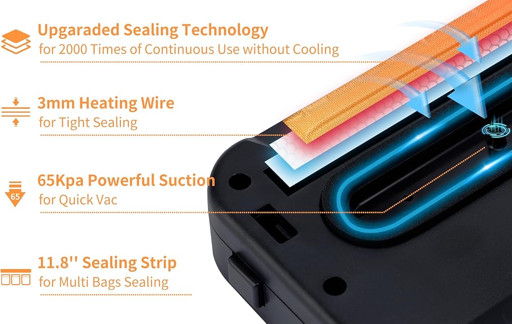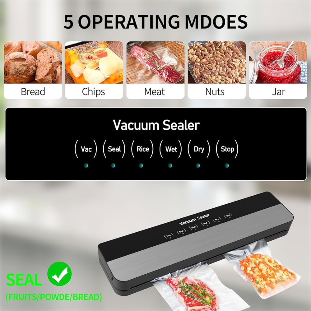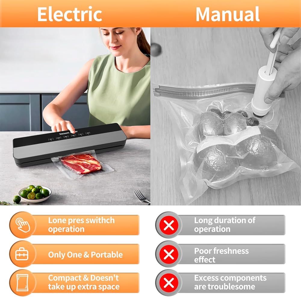【حافظ على الطعام طازجًا لمدة أطول 10 مرات ووفر المال】: ماكينة سد الفراغات هي أداة أساسية في أي مطبخ منزلي. إن استخدام آلة الغلق بالتفريغ الخاصة بنا لن يحافظ على طعامك طازجًا فحسب، بل يحافظ على مذاق طعامك وعناصره الغذائية سليمة، كما يقلل من هدر الطعام ويوفر أموالك. سوف تحب هذه الطريقة في الطبخ.