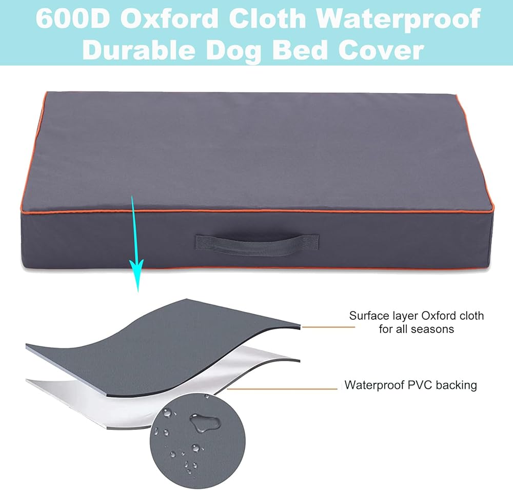 🐶【قوي ومتين】- الغطاء البديل لسرير الكلب مصنوع من نسيج أكسفورد عالي الكثافة 600D مع طبقة سفلية من البولي فينيل كلوريد المقاوم للماء، متين ومقاوم للتمزق. يمكنه منع البقع والانسكابات والسوائل إلى أقصى حد للحفاظ على مرتبة حيوانك الأليف نظيفة وجافة.