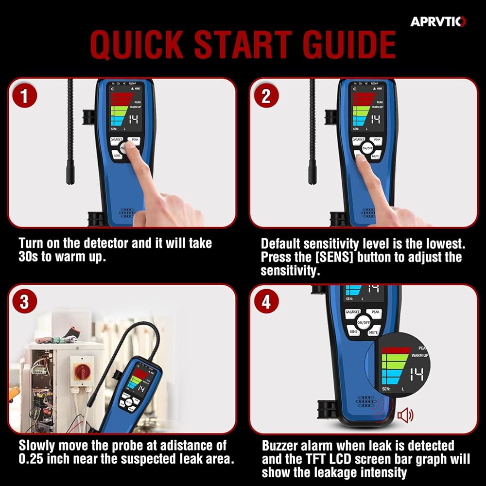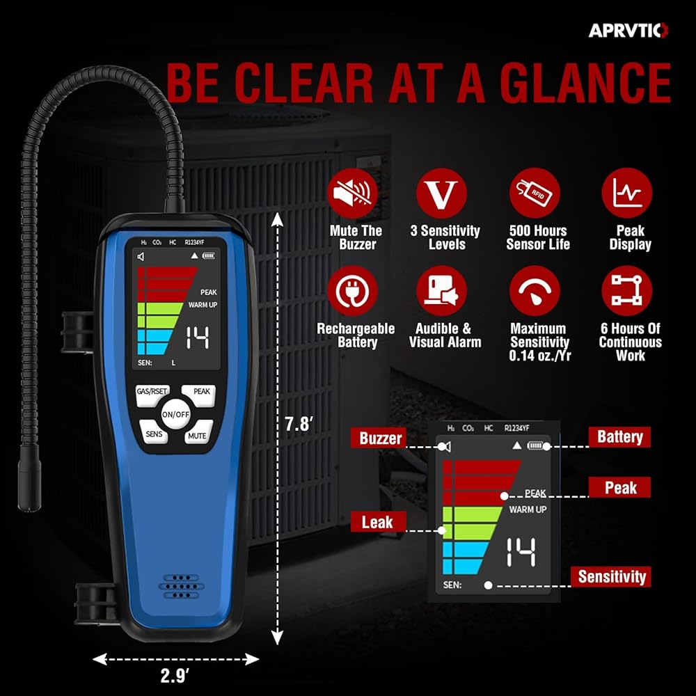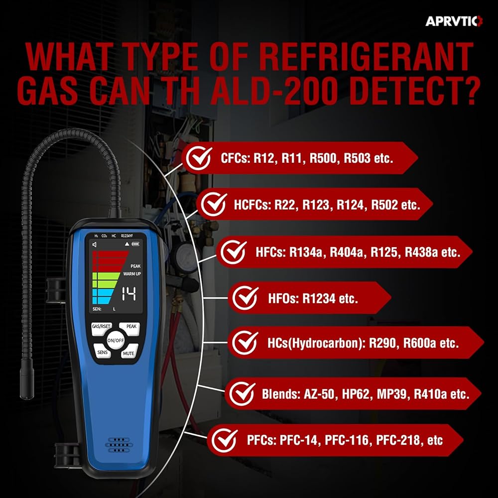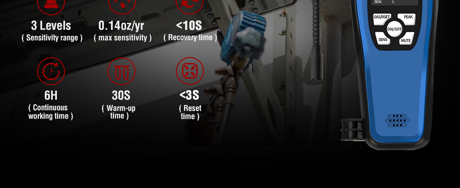 【حساسية عالية وقابلة للتعديل】بالمقارنة مع أجهزة كشف تسرب الفريون التقليدية، فإن جهاز كشف تسرب التيار المتردد ALD-200 أكثر دقة وأقل عرضة للتداخل من الغازات الأخرى. 3 أوضاع للحساسية بأقصى حساسية تصل إلى 0.14 أونصة/سنة. مجسات استشعار مقاس 16 بوصة لكاشف تسرب التكييف تسمح لك بالوصول إلى المناطق التي يصعب الوصول إليها.