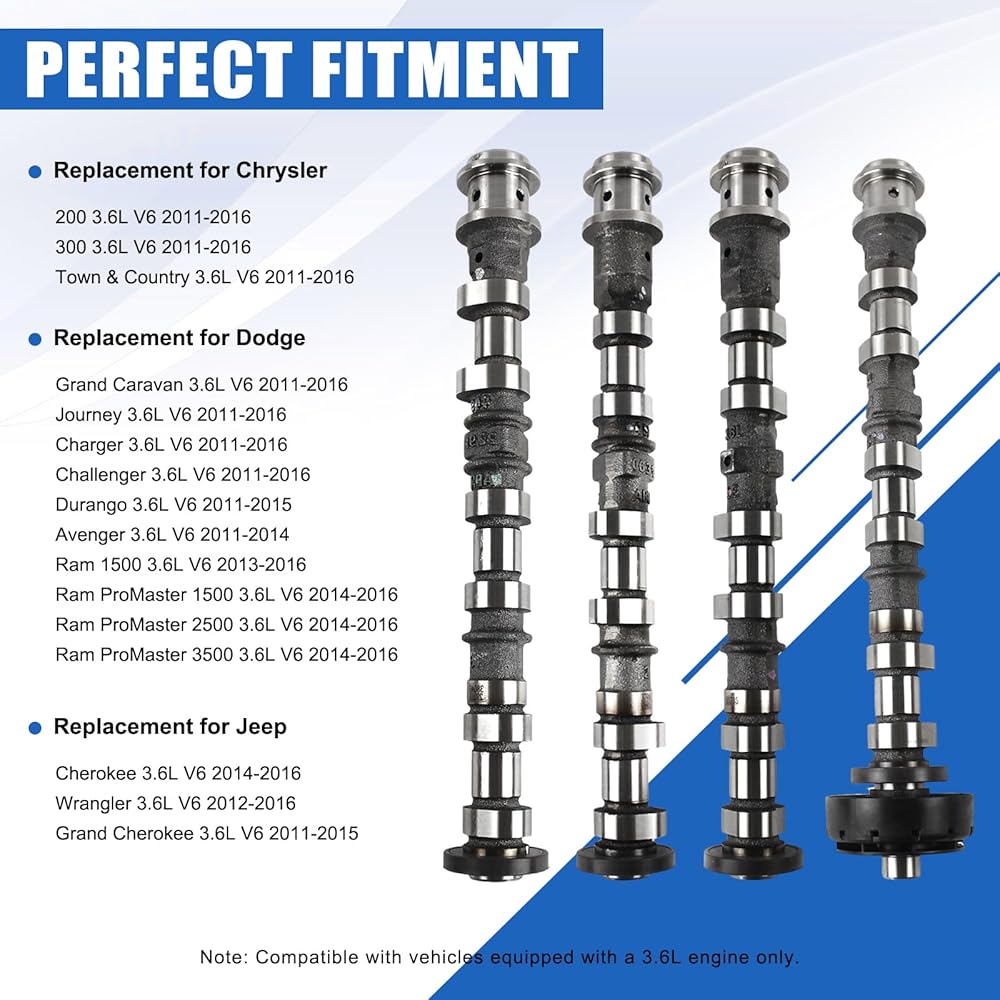 • 【Application】 This OEM Camshaft Rocker Arm Valve Lifter Set is fit for 2011-2015 for Grand Cherokee/Durango 3.6L V6 | 2012-2016 Wrangler 3.6L V6 | 2014-2016 for Cherokee/Ram ProMaster 1500 2500 3500 3.6L V6 | 2011-2016 for Chrysler 200, 300, Town & Country 3.6L V6 | 2013-2016 for Ram 1500 3.6L V6 | 2011-2016 for Charger/Challenger/Journey/Grand Caravan 3.6L V6 | 2011-2014 Avenger 3.6L V6.Camshafts Rocker Arms Lifters Assembly is specifically designed for 3.6L V6 engines.