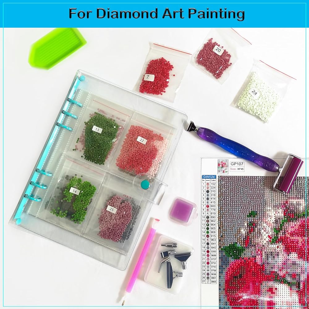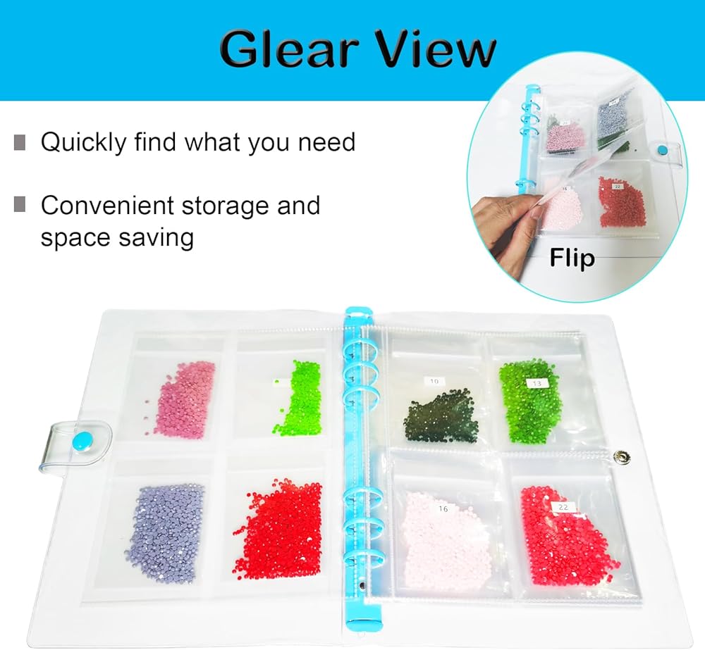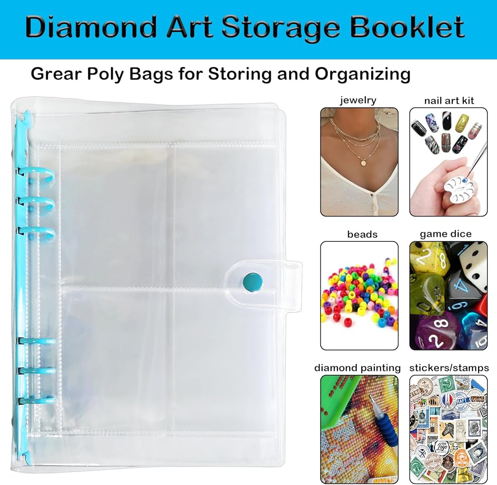 تخزين مصنف وتصميم موفر للمساحة: منظم الرسم الماسي هذا مثالي لأولئك الذين يرغبون في توفير المساحة مع الحفاظ على الماس الخاص بهم منظمًا ويمكن الوصول إليه بسهولة. يمكن لكتيبات الطوابع البريدية أن تحافظ على الخرز أنيقًا وواضحًا للغاية وتمنعها من الخلط والتشابك.