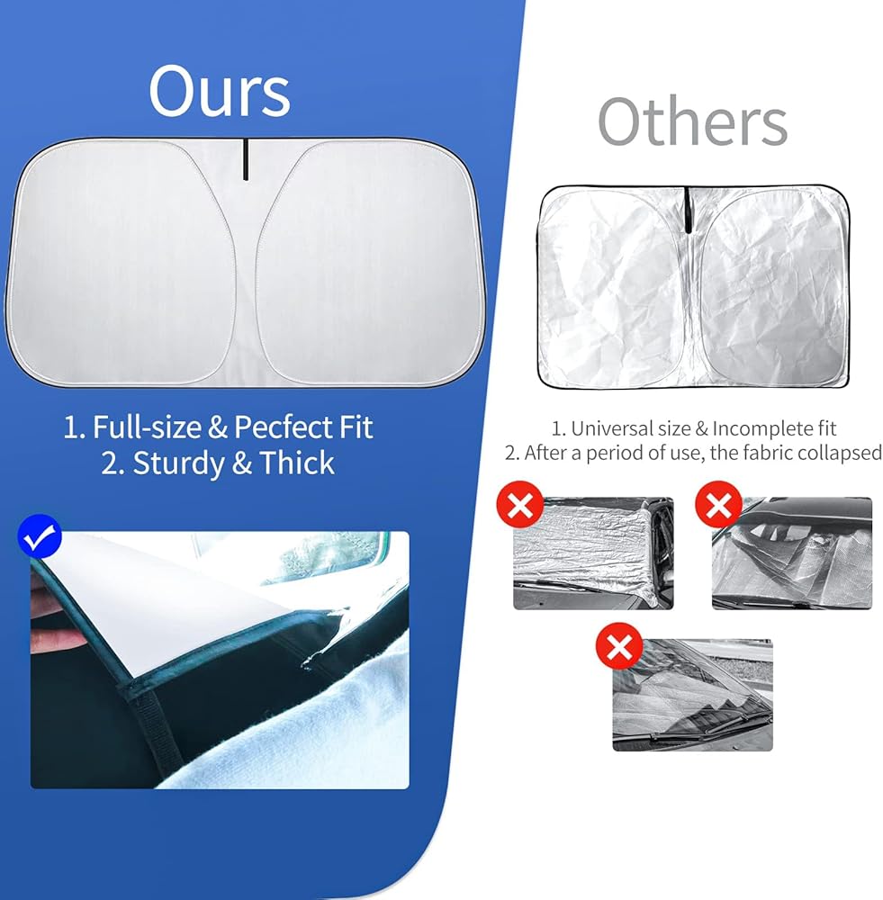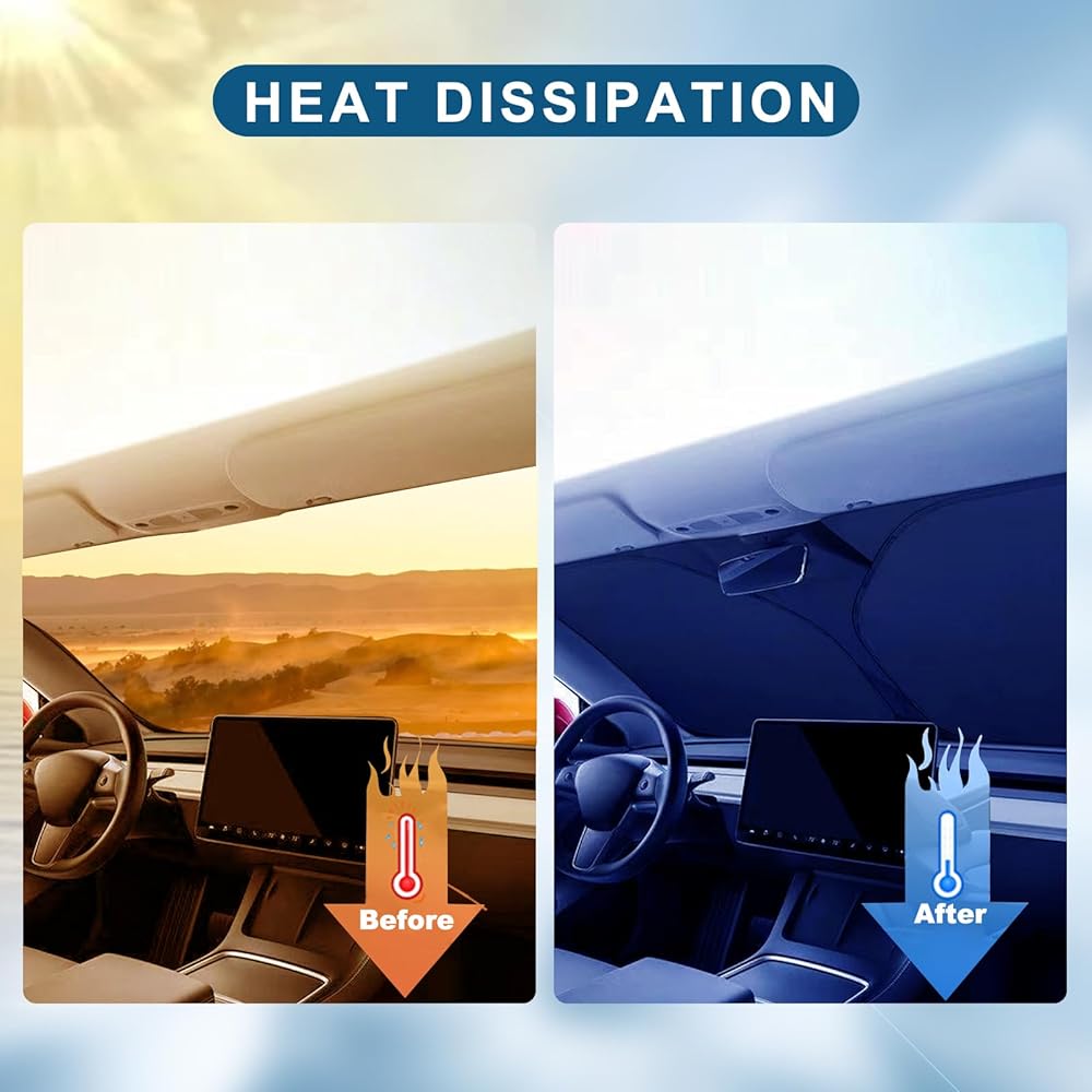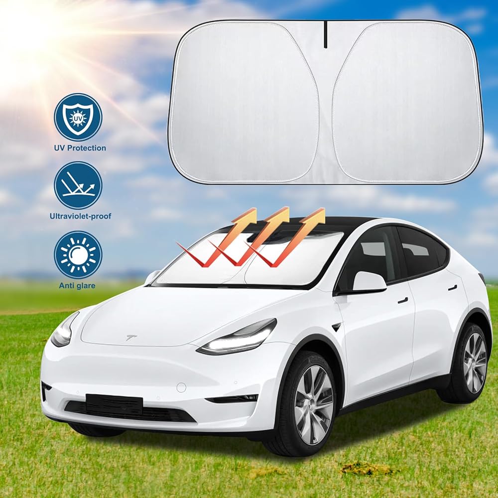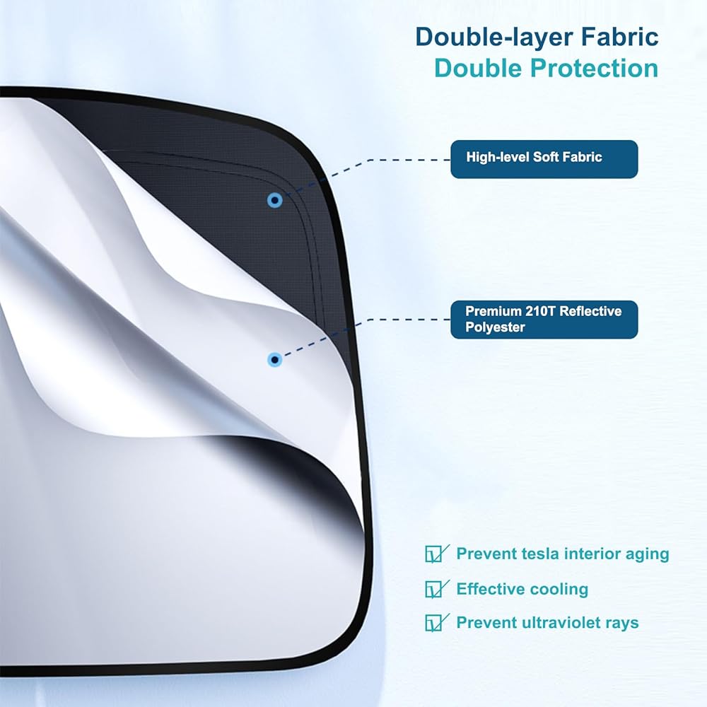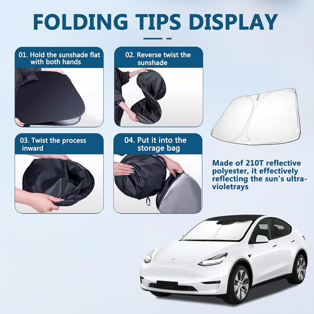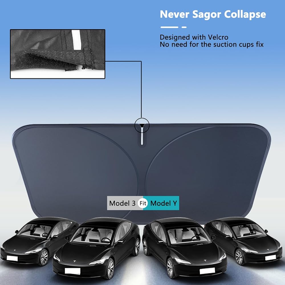 مظلة شمسية مطورة للزجاج الأمامي طراز Tesla 3/Y، إطار معدني مقوى، نسيج متطور للحماية من الأشعة فوق البنفسجية، مظلة شمسية أمامية كاملة الحجم قابلة للطي، ملحقات احترافية لحماية الجزء الداخلي والحفاظ على التبريد