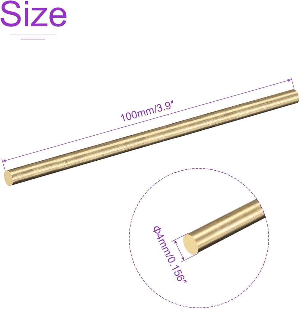 SIZE: Diameter: 5mm/0.195inch; Length: 100mm/3.9inch;Package content: 2pcs Brass Rod