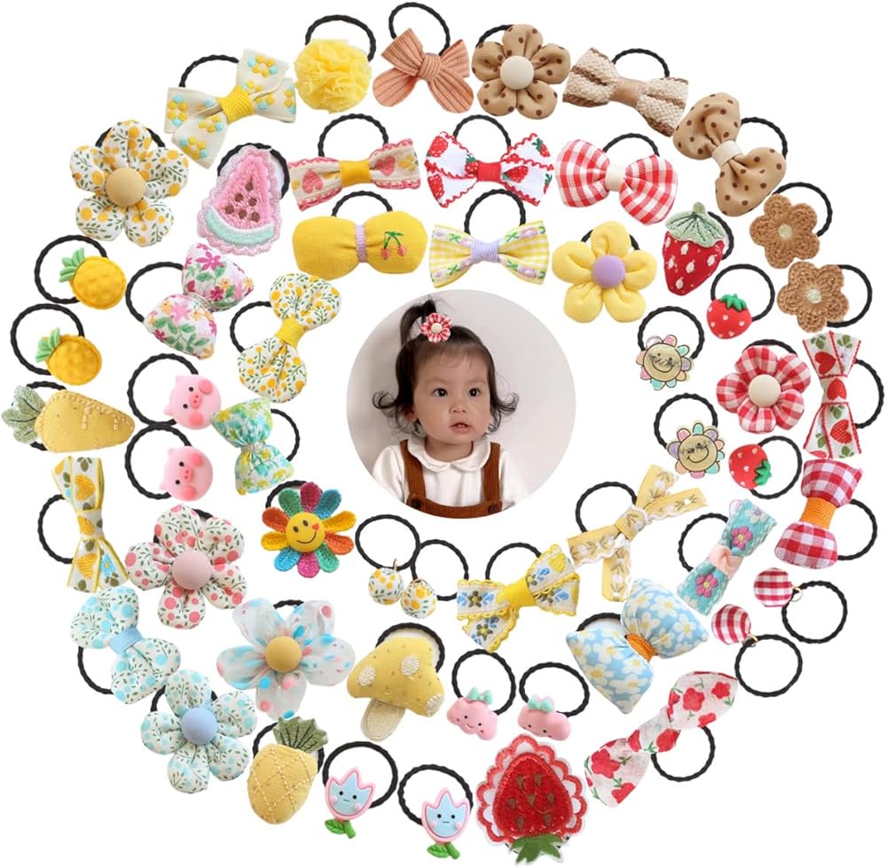 ربطات شعر FZBNSRKO اللطيفة للفتيات، 30 قطعة من ربطات الشعر المرنة للفتيات الكرتونية، مجموعة ملونة غير قابلة للانزلاق، دبابيس شعر على شكل زهرة وفاكهة وحيوان قوس قزح، شريط مطاطي ناعم للفتيات الصغيرات (نمط عشوائي)