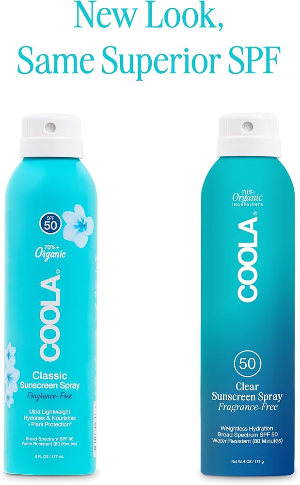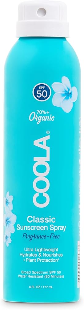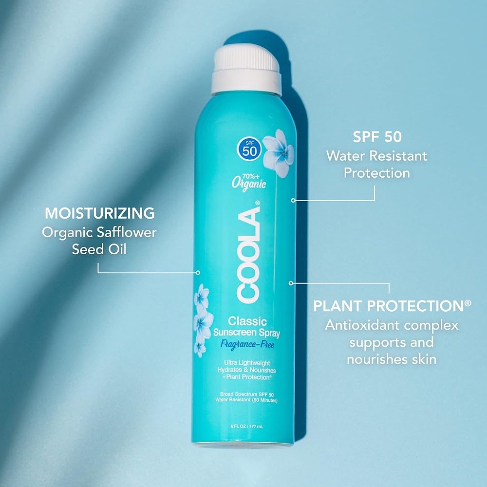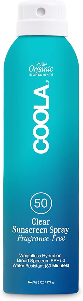 بخاخ واقي من الشمس عضوي بعامل حماية من الشمس SPF 50 من COOLA، عناية بالبشرة تم اختبارها من قبل أطباء الجلدية للحماية اليومية، نباتي وخالي من الغلوتين، خالي من العطور، 6 أونصة سائلة