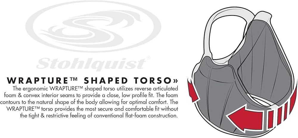 GRADED SIZING - Stohlquist's Graded Sizing offers the best fit, and lowest footprint possible, for the widest range of body types. We have fine tuned each individual size, and sculpted the foam footprint and foam thickness to provide a better fitting, and more comfortable PFD for people of all sizes