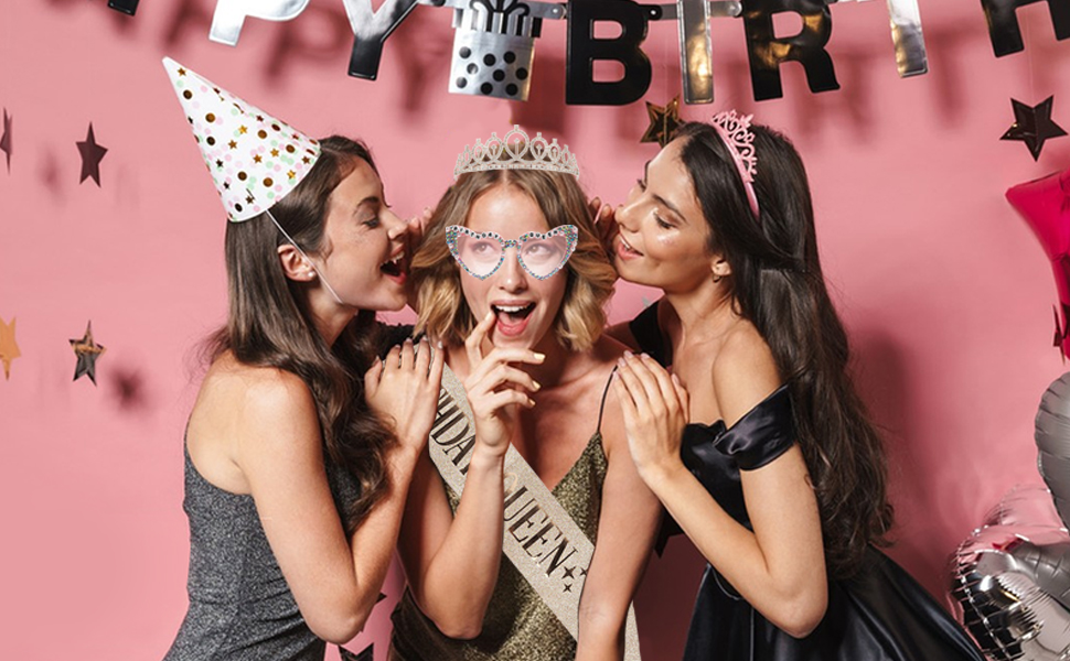 🎈【وشاح عيد الميلاد】الوشاح المتلألئ مصنوع من قماش ناعم عالي الجودة مطبوع عليه BIRTHDAY QUEEN، ويبلغ الطول الإجمالي حوالي 62.5 بوصة وهو مجهز بدبوس لضبط الحجم وفقًا لاحتياجاتك!