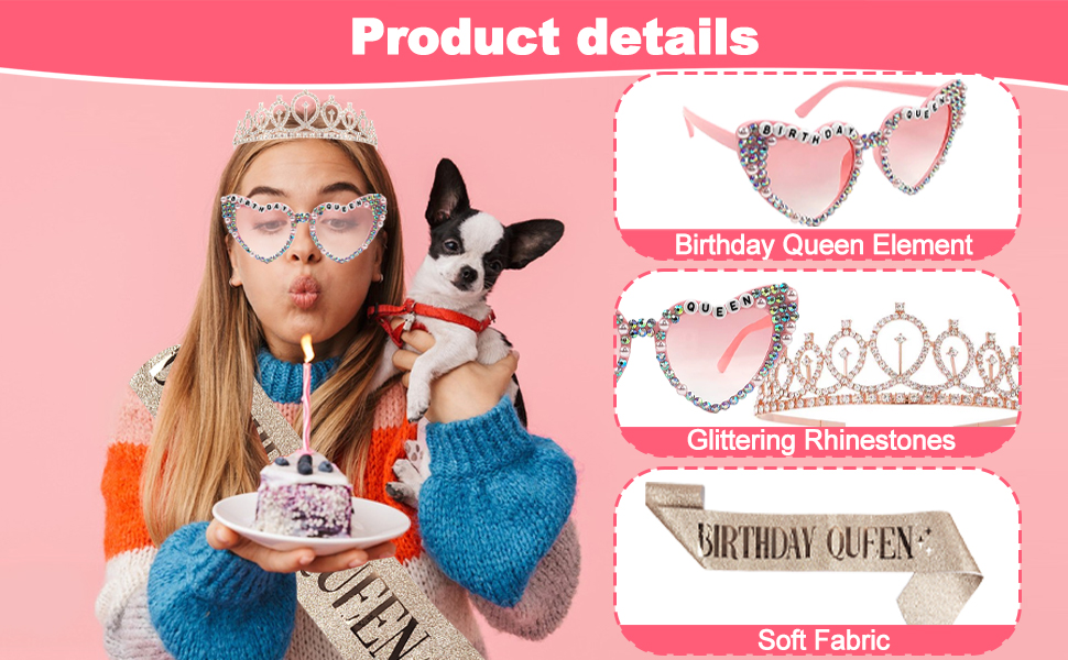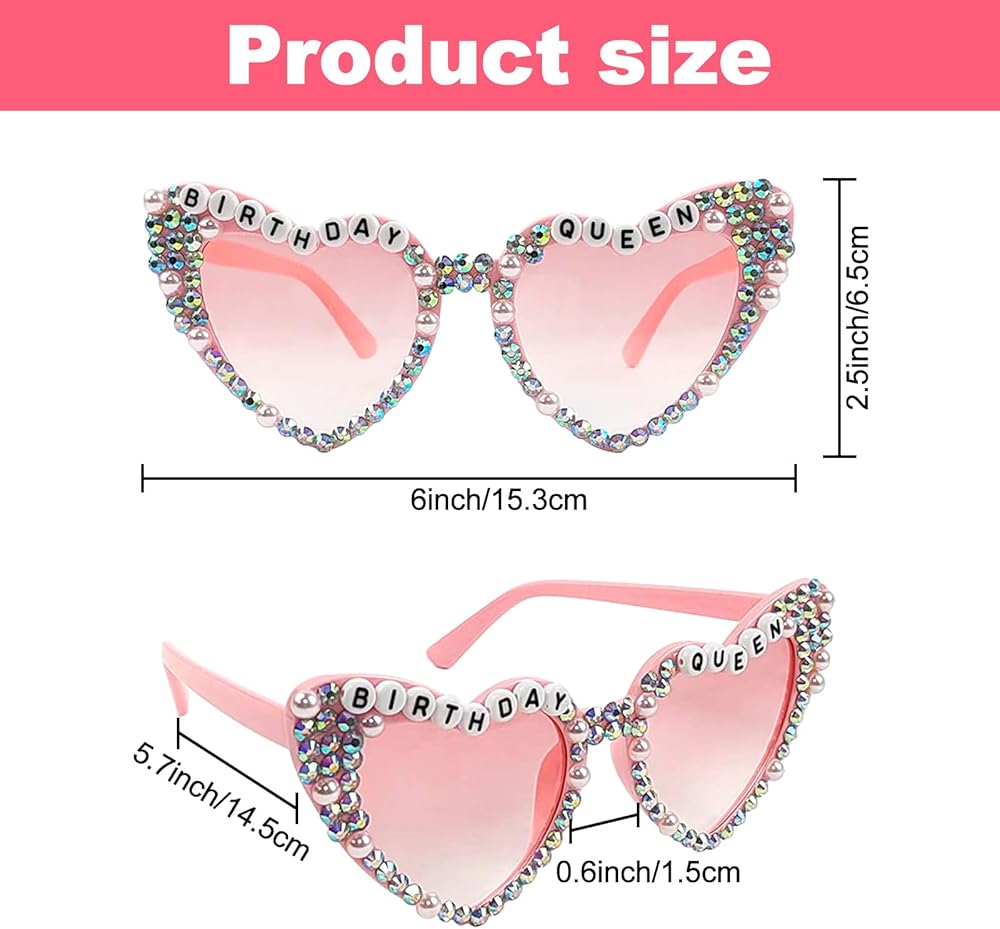 🎉【نظارات عيد ميلاد الملكة】مصنوعة من مادة البولي كربونات عالية الجودة مع الماس واللؤلؤ المتلألئ وحروف BIRTHDAY QUEEN، ستجعلك نظارات عيد الميلاد محط اهتمام حفلة عيد ميلادك وتجذب انتباه الآخرين!