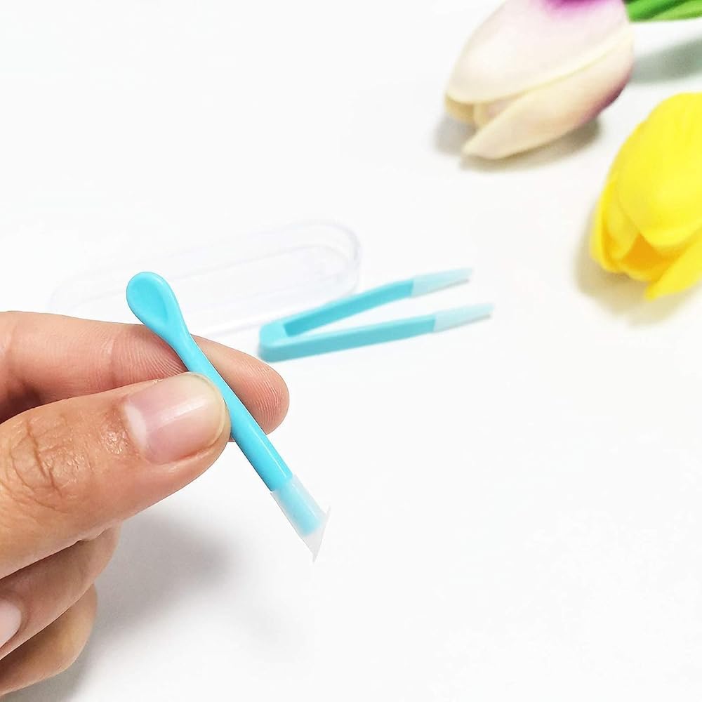 أداة وضع العدسات اللاصقة الزرقاء من DPWOUM، أداة إزالة العدسات اللاصقة، مُدخل/مزيل + ملقط مع طرف ناعم، لحالات العدسات اللاصقة الصحية والمنزلية