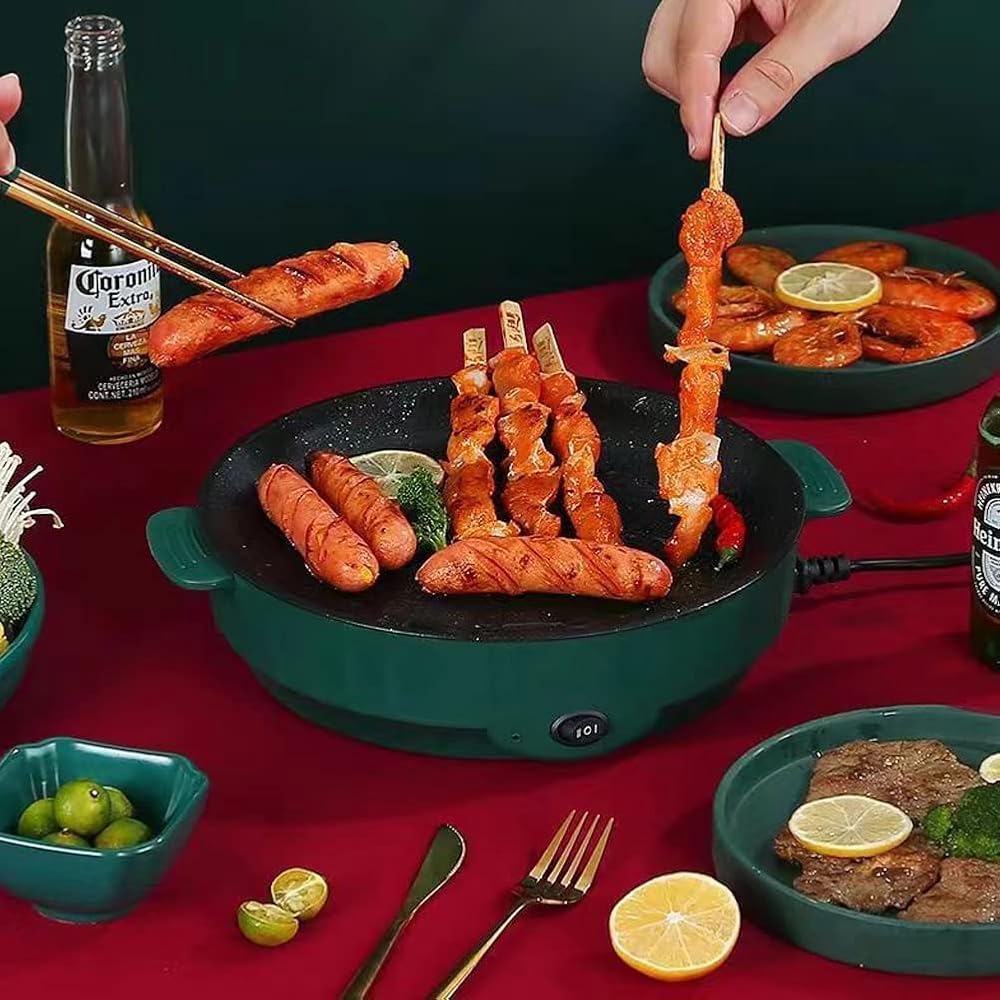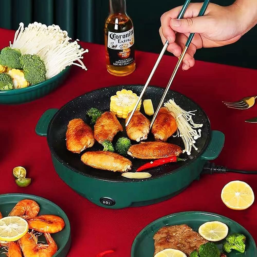 أدوات خبز كهربائية ذات سعة كبيرة: تحتوي مقلاة التحميص الكهربائية هذه على مقلاة كبيرة وعميقة بحجم 30 × 26 × 7 سم، وهي مناسبة جدًا للترفيه العائلي أو الحفلات. يمكنه التعامل مع الطهي اللذيذ ويضمن أنه يمكنك بسهولة تحضير البطاطس المقلية ذات الحجم العائلي. هذا الوعاء عميق جدًا ويمكنه استيعاب 2 إلى 3 أشخاص للاستمتاع بالمزيد من الطعام المشوي في الوعاء الساخن ومنع الفائض.