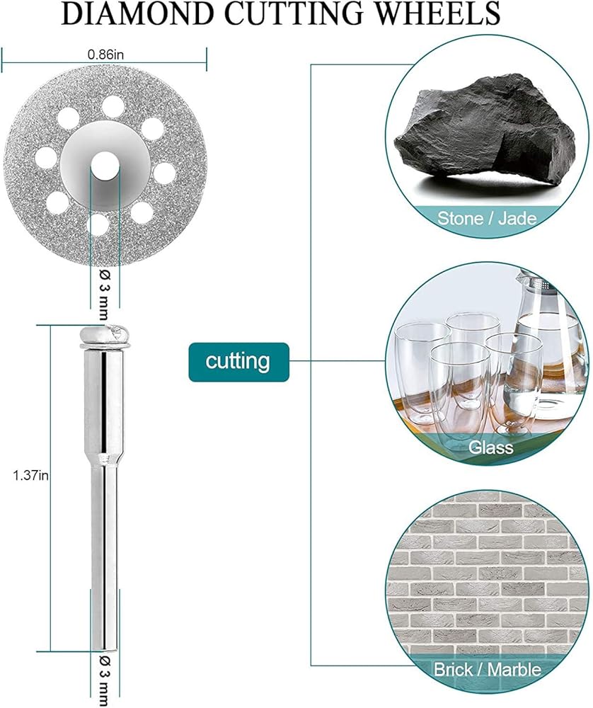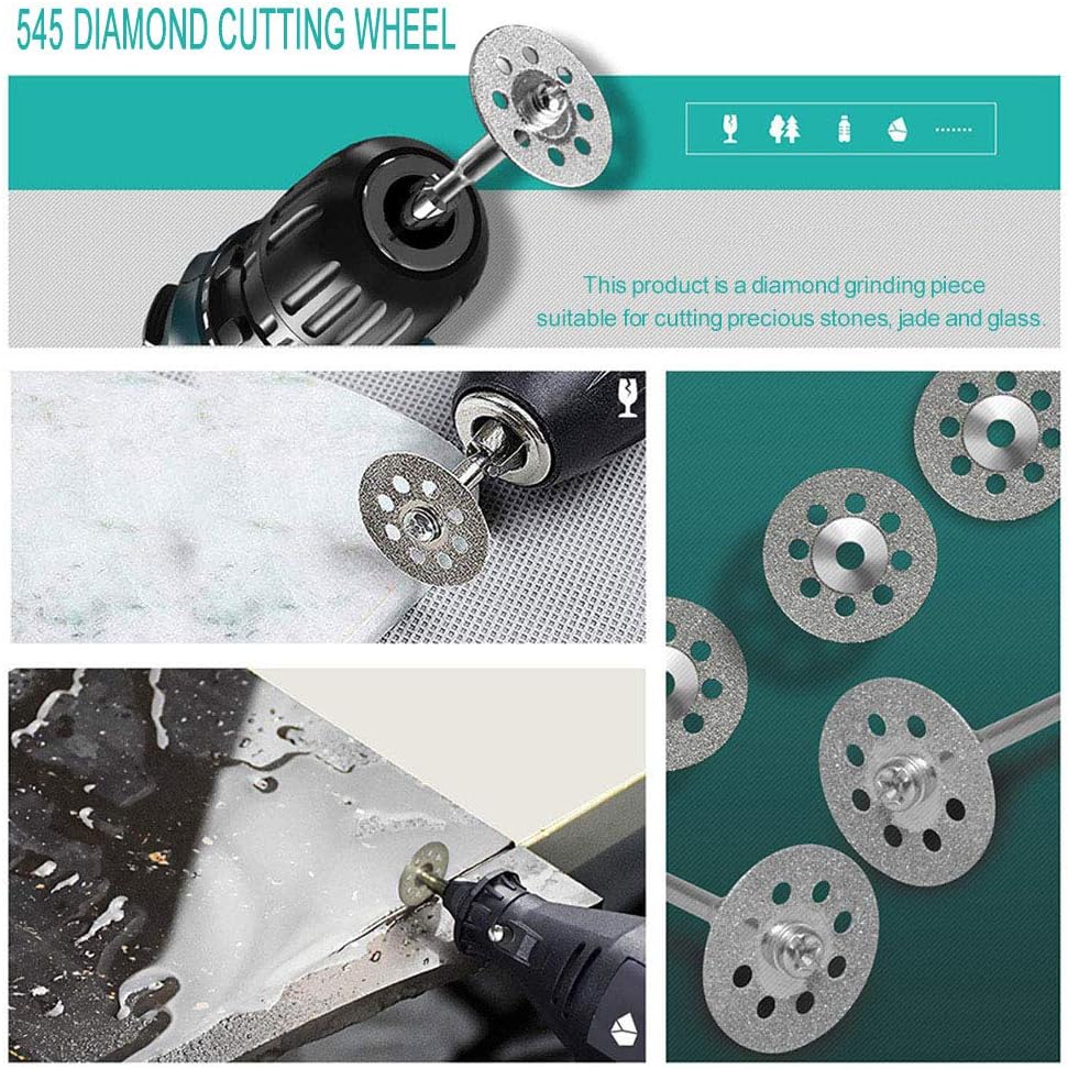 3. أقراص القطع الدوارة الماسية (10 عبوات): مثالية لقطع ونشر ونحت وحفظ المواد الصلبة. إن أقراص القطع هذه مطلية بحبيبات الماس الدقيقة للعمل مع المواد الصلبة. تم تصميم أقراص القطع هذه لتحافظ على شكلها دون أن تنكسر. قطع الخشب والزجاج والبلاستيك والمعادن والرخام والبناء والحجر والخرسانة والألياف الزجاجية.