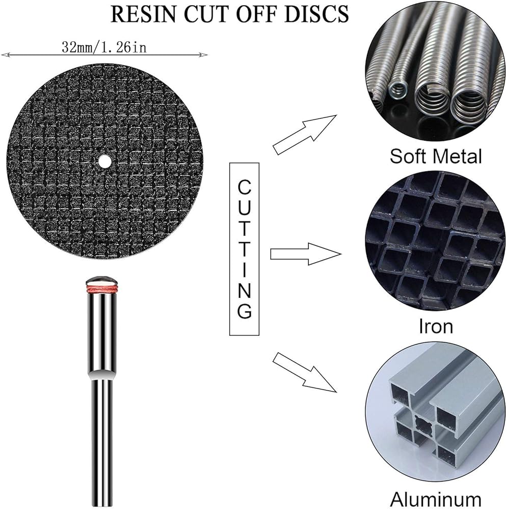 32 قطعة. مجموعة ملحقات أدوات دوارة لـ Dremel، عجلة قطع معززة بالألياف الزجاجية مقاس 1-1/4 بوصة، أقراص قطع دوارة ماسية مقاس 7/8 بوصة وشفرة منشار صغيرة مع 48 سن قطع