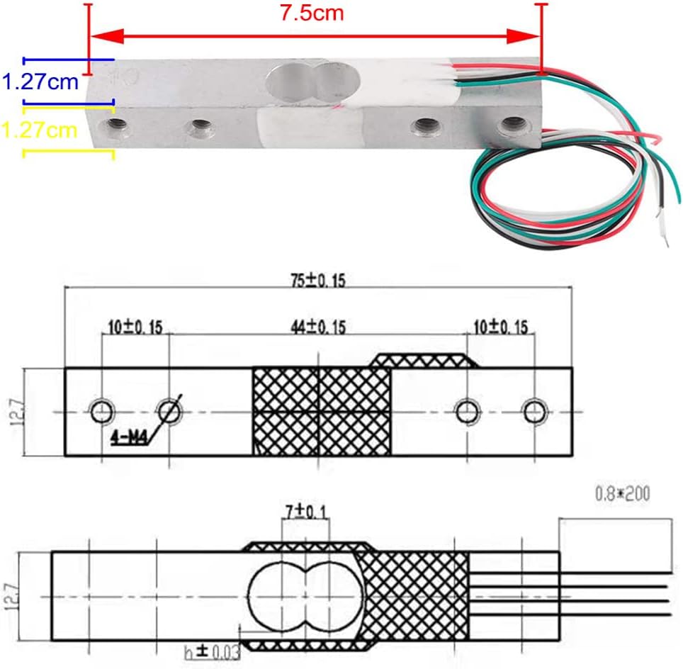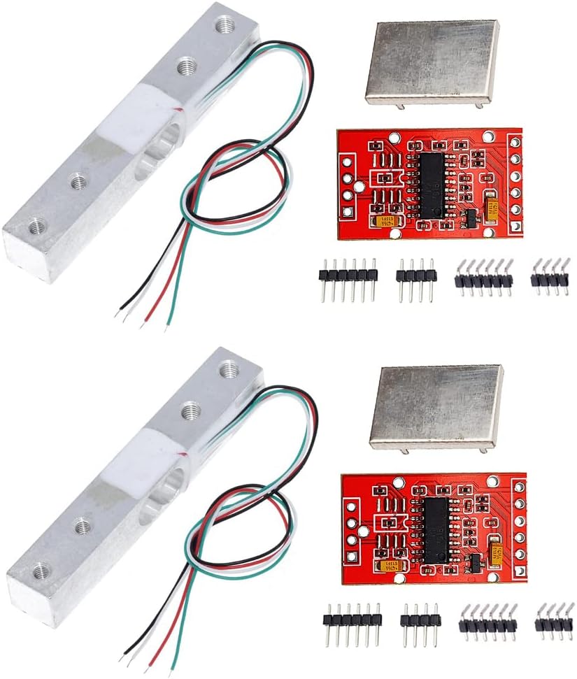 تحتاج إلى توصيل مستشعر الحمل بوحدة HX711 مثل هذا، الأحمر إلى Out+، الأسود إلى GND، الأخضر إلى A+، الأبيض إلى A-