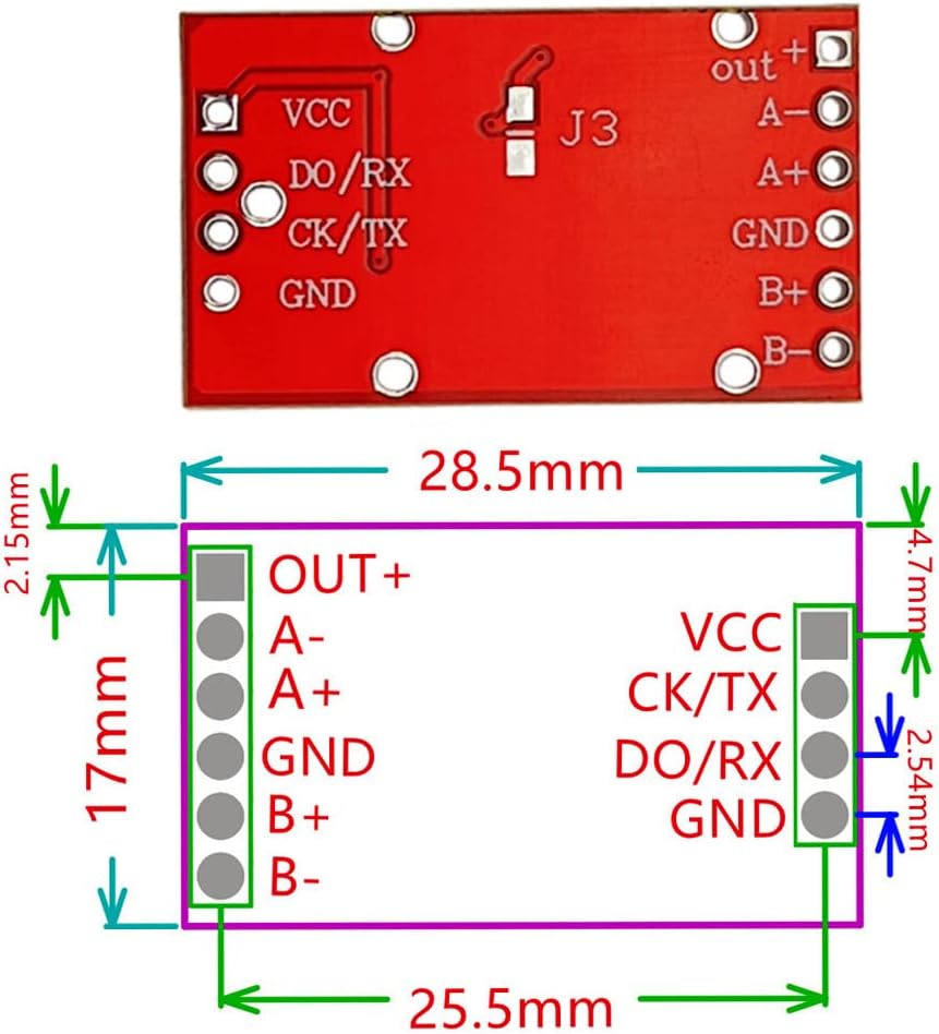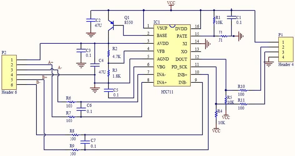ملاحظة: وصلة J1 الموجودة في الجزء الخلفي من الوحدة هي معدل إخراج البيانات 80 هرتز/10 هرتز لشريحة HX711، J1 مفتوح، معدل الإخراج هو 80 هرتز، أي 80 مرة في الثانية تحويل الإعلان، دائرة قصر J1، الإخراج معدل 10 هرتز.